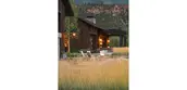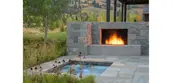 Inherent in the design is the cultivation of a very simple yet sophisticated indoor-outdoor living experience for the owners and their guests. Movable and invisible walls facilitate a seamless connection between buildings, validating the relationship between the fundamental and compelling elements of landscape and architecture. Along the southern façade, a wall of floor-to-ceiling windows retreats into the structure, framing borrowed views to the agrarian mountain valley setting. A stone veranda, enclosed by a low stone seating wall and shaded by a steel trellis, expands the kitchen, living, and dining rooms into the physical landscape, offering a promontory from which to view the meadow. The connection between home and pasture is further unified by the subtle sculpting of a previously untenable topography into a gently rolling landform.