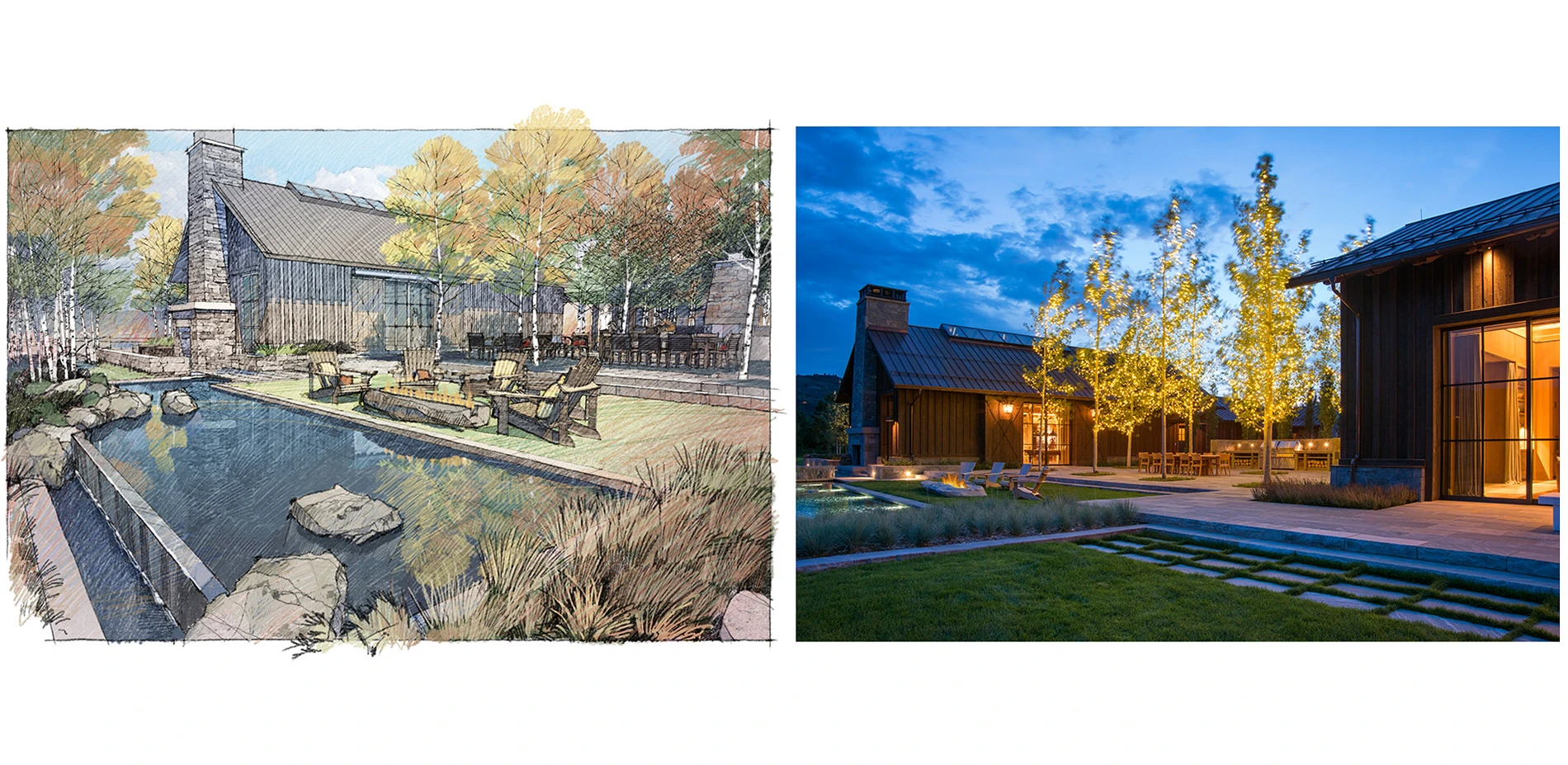 This project was not, ‘Hey, look at how much money I have.’ Instead, there was a much more human scale. The setting is already beautiful, and they worked with this. The hand sketches are a nice touch.
