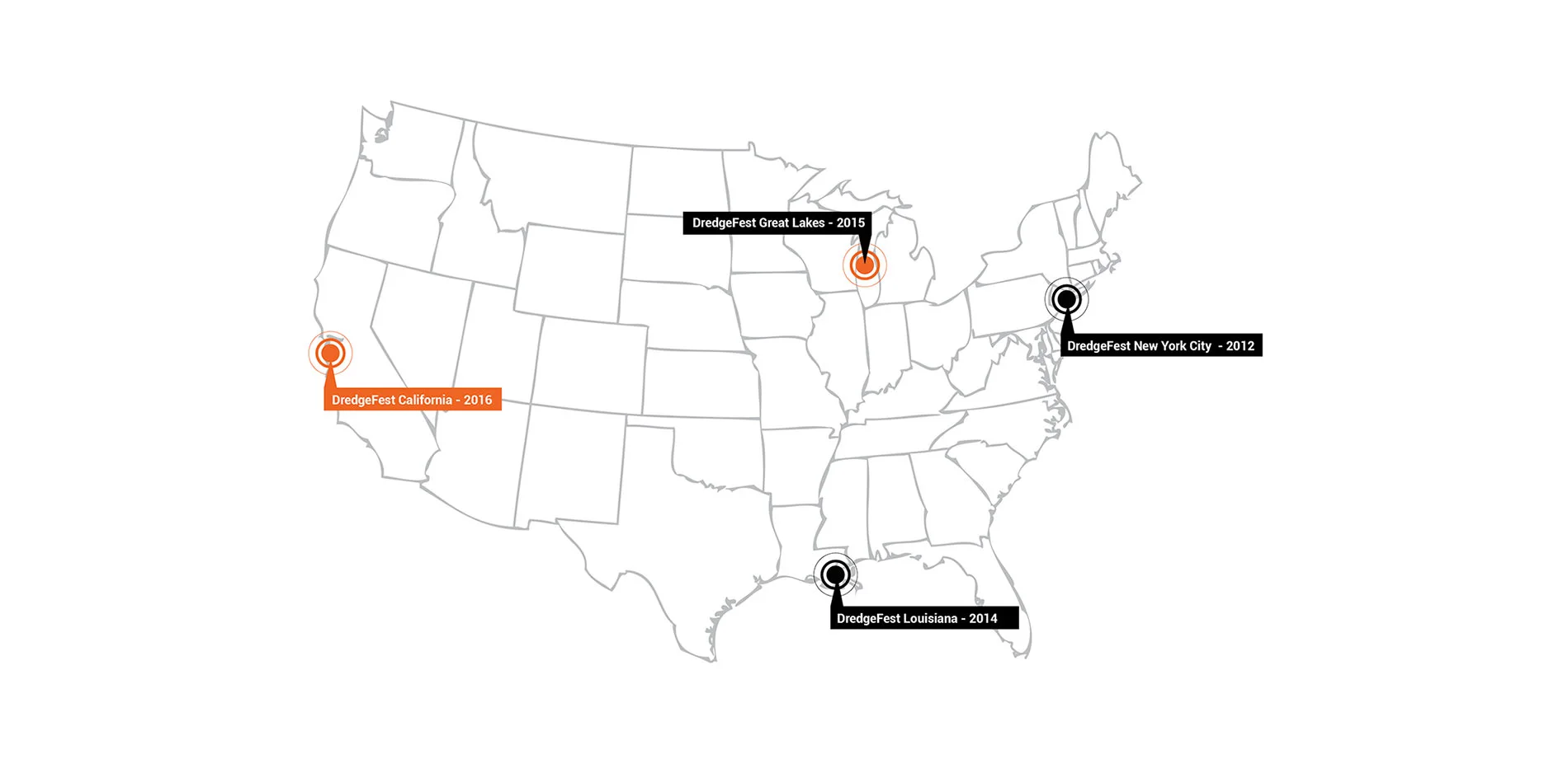 This question has been at the heart of the Dredge Research Collaborative's research, conversations, events, and speculative design workshops over the past six years and have culminated in the DredgeFest event series, held across America’s four coasts from NYC (Sept 2012) to Louisiana (Jan 2014) to the Great Lakes (August 2015). A fourth event will occur at UC Berkeley, California (June 2016). DredgeFests grow as our aspirations expand—our New York City event spanned two days, while DredgeFest Great Lakes spanned an entire week to accommodate more intensive workshops and on-site sediment tours.