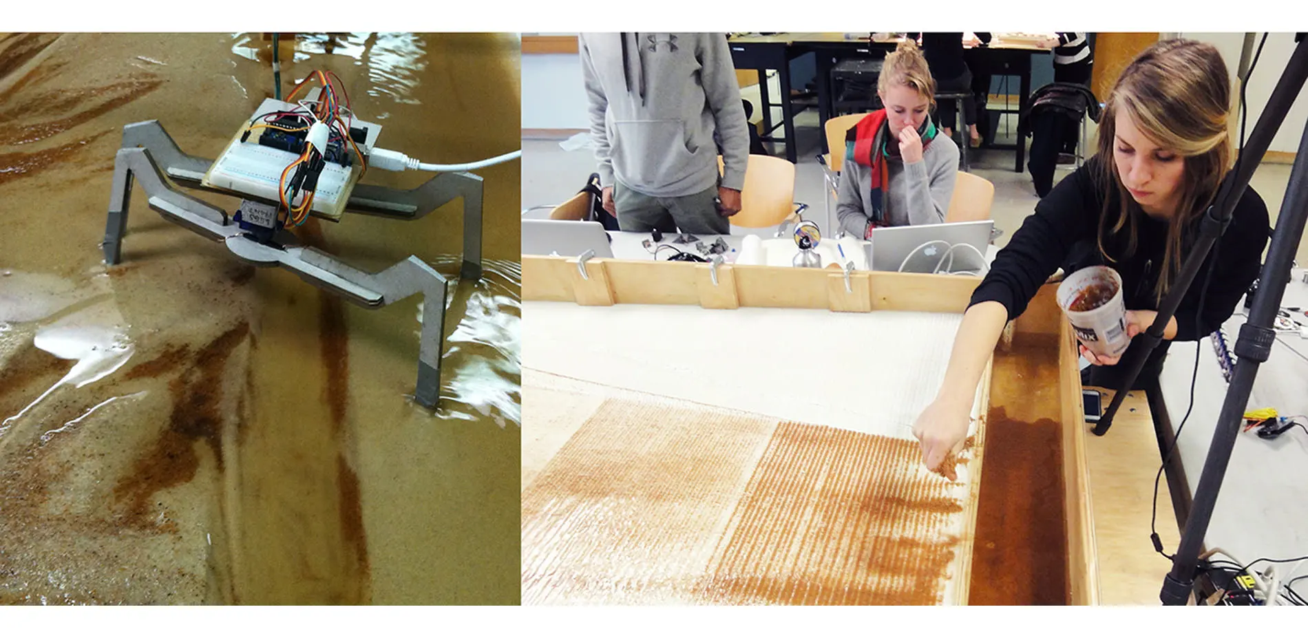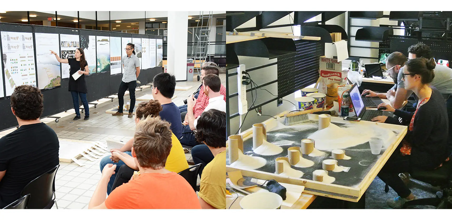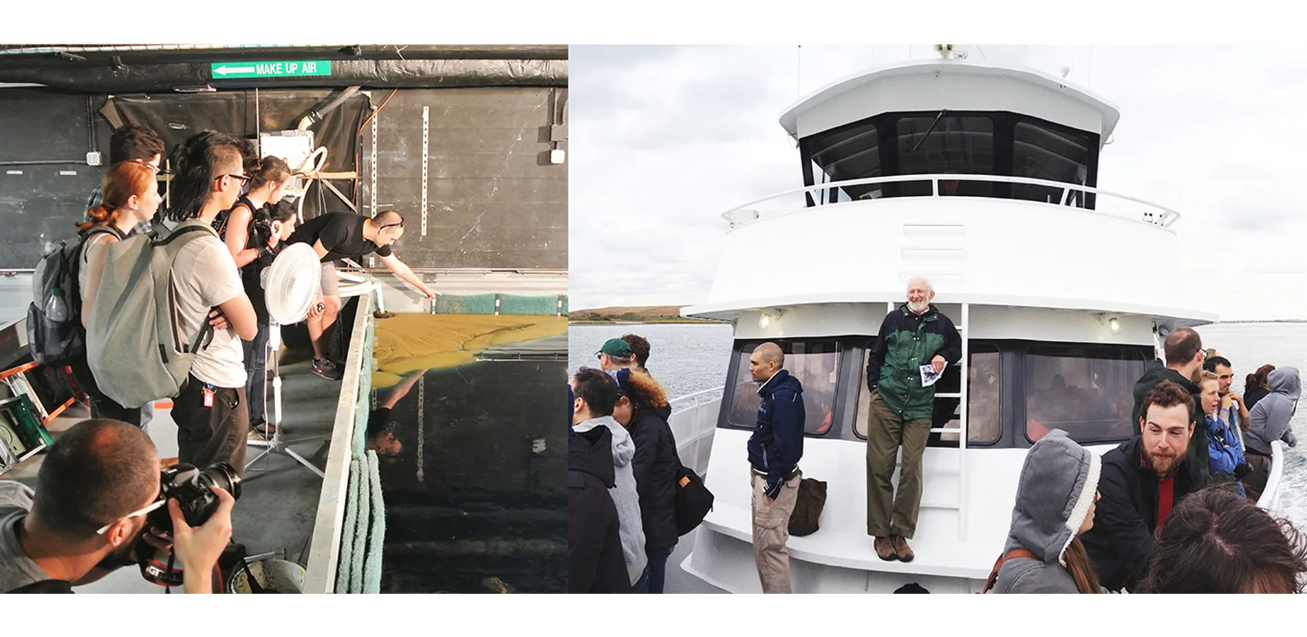 DredgeFest tours are the most successful at engaging the broadest of audiences, as there is huge desire to ‘peek behind the curtain’ at the interworking of these infrastructural landscapes. Students and young professionals looking for a deeper investigation participate in our DredgeFest design workshops, led by Dredge Research Collaborative members and invited outside practitioners, such as Bradley Cantrell (Harvard Graduate School of Design), Kristi Cheramie (Ohio State University), Mark Smout (Smout Allen / Bartlett School of Architecture), and Alexander Robinson (University of Southern California). Workshops include fifteen to twenty-five students working in collaborative groups, and are run as mini-studios that explore and innovate on the DredgeFest themes such as ‘Adaptive Devices,’ ‘Sediment Choreographies,’ and ‘Hybrid Landscapes.’