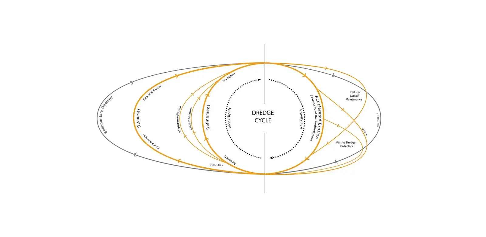 Dredging and other human sediment handling practices occur below the waterline, obscured from the public view and controlled by a limited number of policy-makers and engineers. The DredgeFest event series elevates public awareness of this hidden infrastructure and promotes the potential of systemic and comprehensive design. From erosion control to navigational channel design, we believe landscape architects should be at the table. We seek both to interest landscape architects in sedimentary design and to demonstrate to potential partners that landscape architects offer valuable skills, methods, and insights.