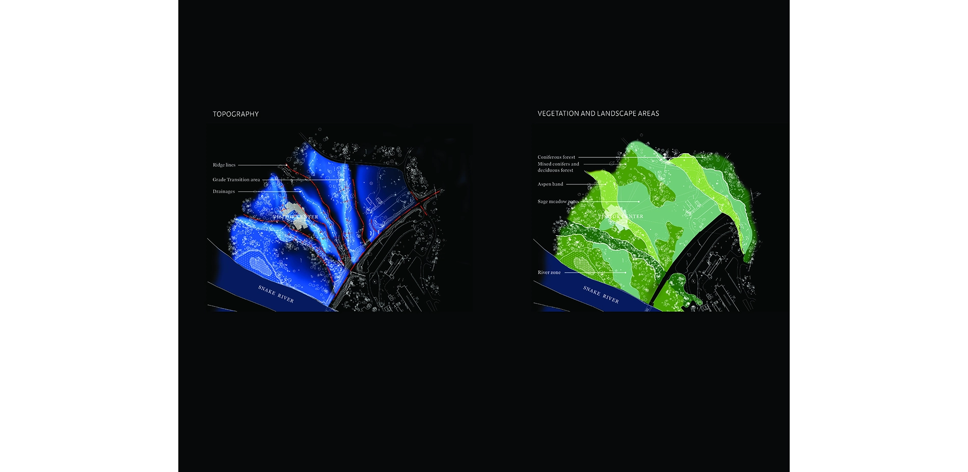 The site’s ecological context was the basis for design and the landscape architects’ intent to galvanize the visitor’s experience of place. The layered characteristics of the site’s topography, views, vegetation, and dynamic seasonal changes established tenets that influence how the site was developed, including sequence of movement, strategies for site intervention, snow management, amenities for human comfort through the seasons, and the amplification of a viscerally stunning place.