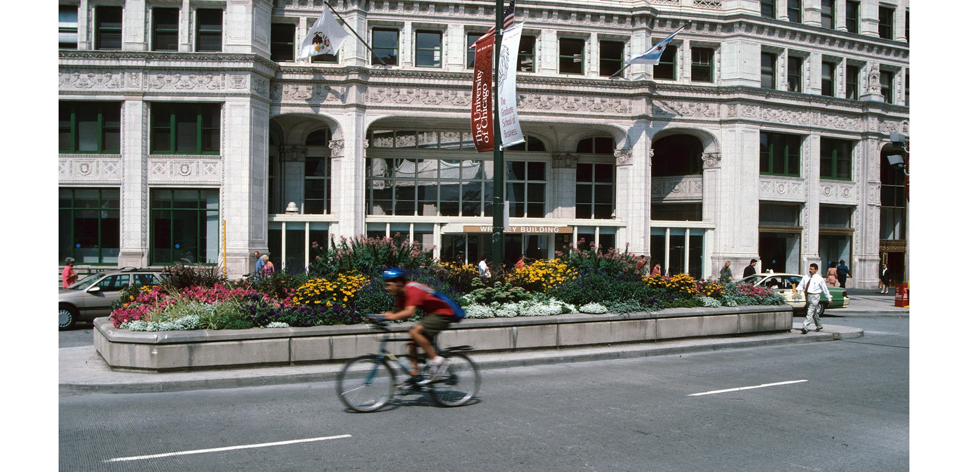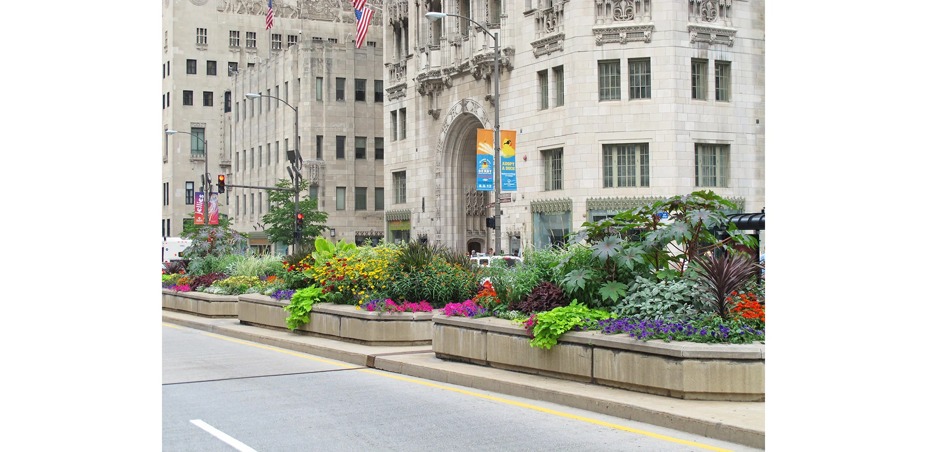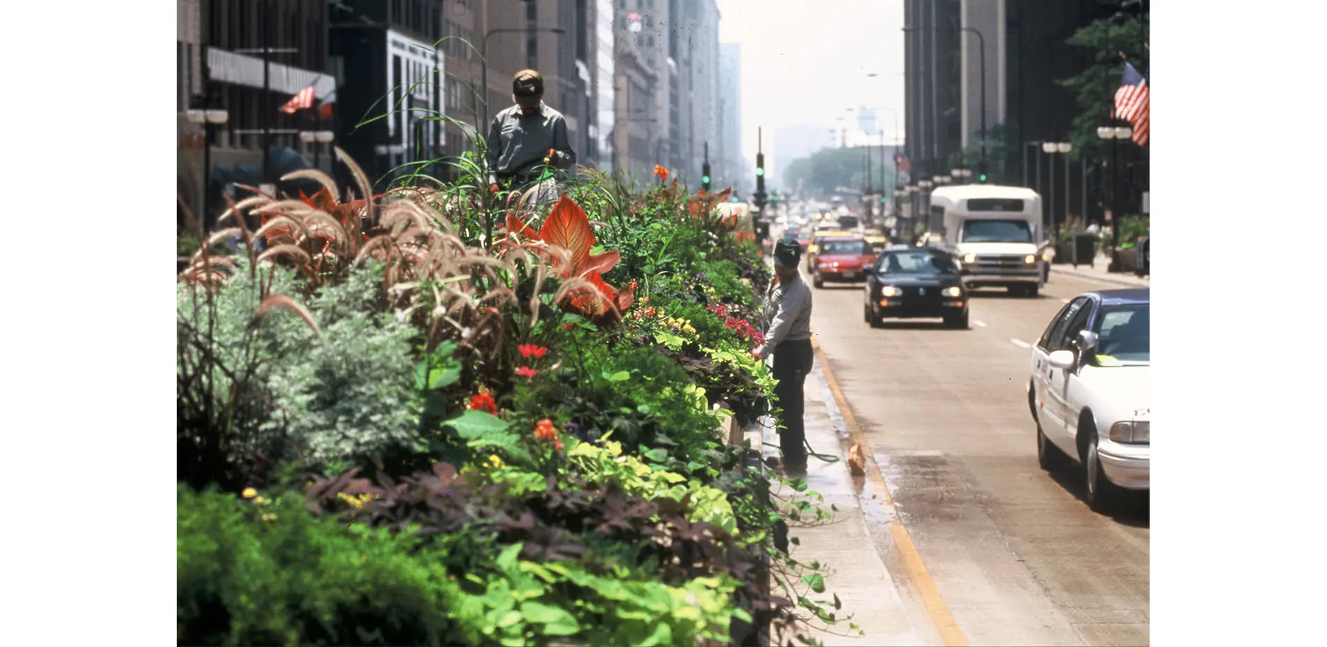 In 1993, the Michigan Avenue Streetscape changed drastically for the better, and it all started with four parkway planters in front of the Crate & Barrel flagship store. In 1991, the retailer debuted planters that were overflowing with horticulture and flowers of different shapes, sizes, and colors. They gracefully popped against the drab city grays that characterized Michigan Avenue—so much so that even Mayor Richard M. Daley took notice. Daley, whose legacy includes the aggressive greening of Chicago’s public spaces, called Crate & Barrel Founder Gordon Segal to inquire about the planters: who designed them, how much did they cost, and was Segal interested in bringing that kind of design to the middle of Michigan Avenue? With that, the collaboration to spruce up Michigan Avenue with beautiful landscape design was up and running.