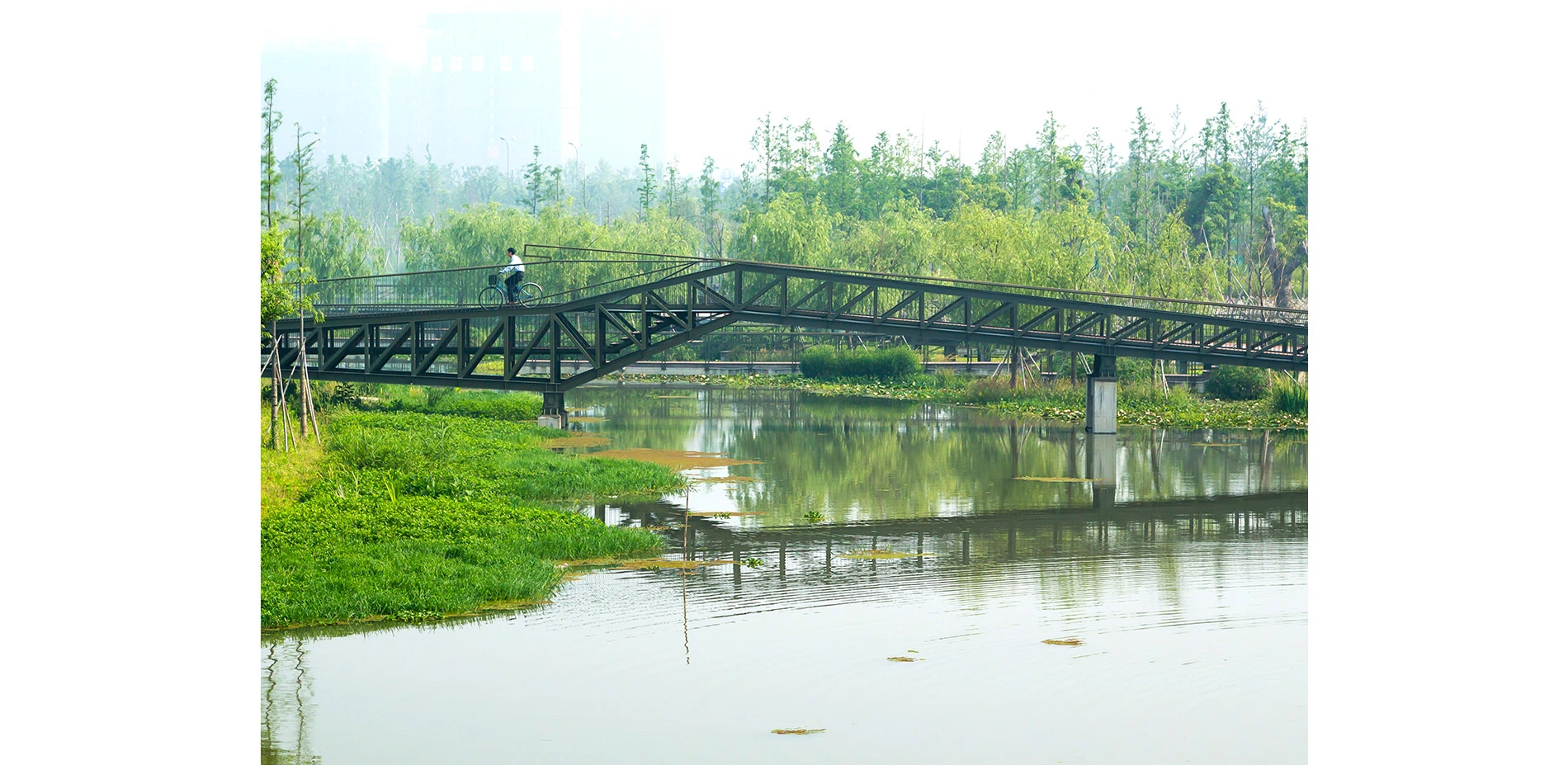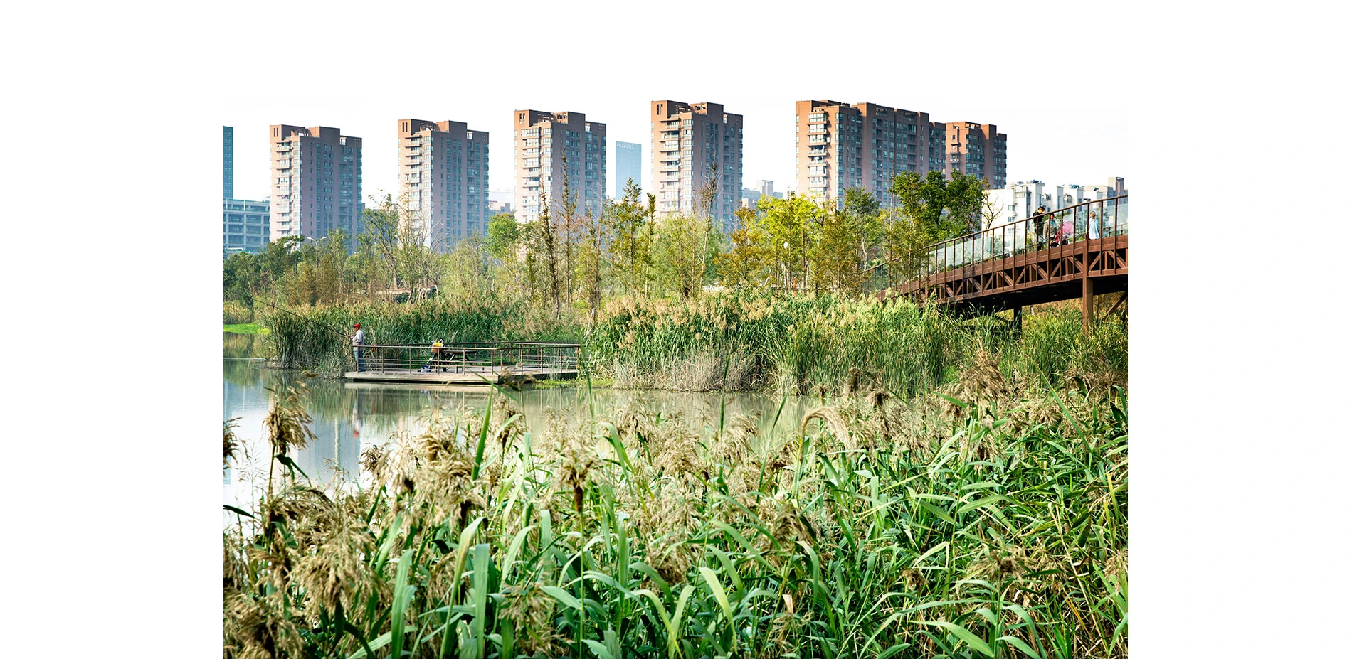 In 2002, with the dual intention of alleviating development pressure on Old Ningbo City and setting a precedent for a balanced, ecological approach to further urban expansion, the planning department called for a master plan for “Ningbo Eastern New City,” which includes six square miles of mixed-use urban development to accommodate the growing population. Ningbo Eco-Corridor is located at the center of this urban expansion. It provides a linear network of green spaces where humans, wildlife, and plants can reside, coexist, and prosper.