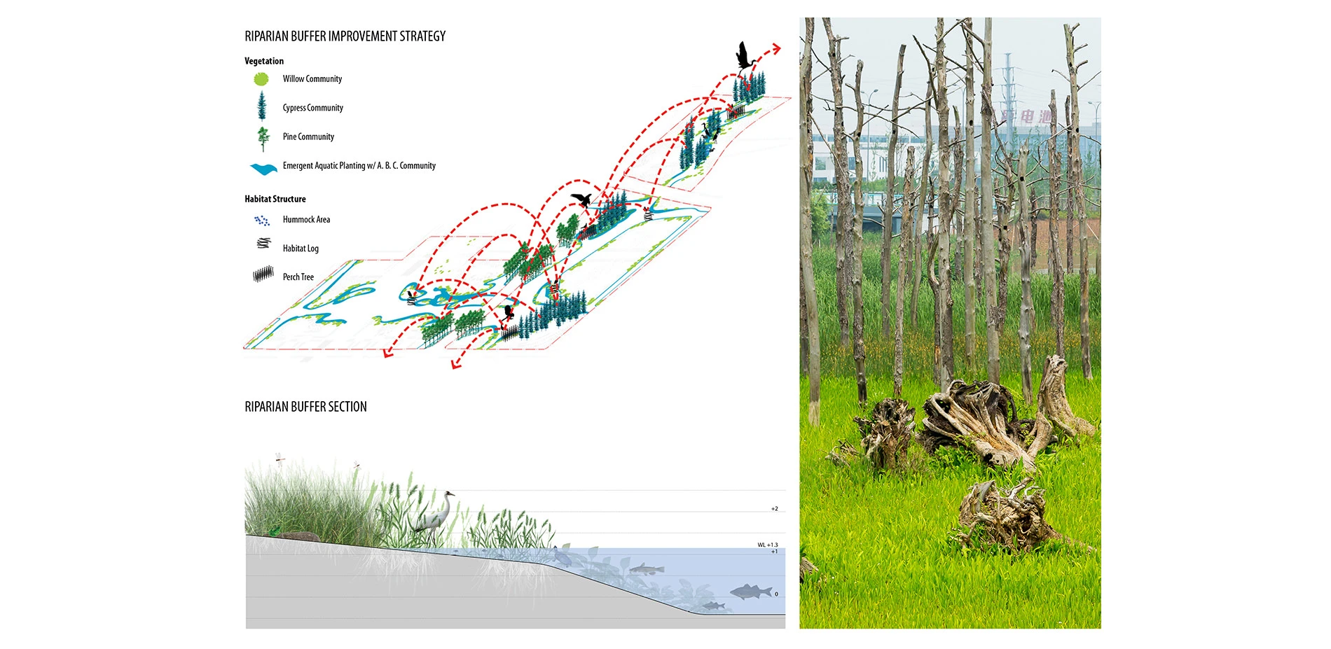 The resulting successful “living filter” makes a case for similarly sized cities in the region and beyond to plan cities based on high-performance best practices. Ningbo Eco-Corridor is a clear example of the economic and quality of life successes that investing in green infrastructure has to offer.Design Approach