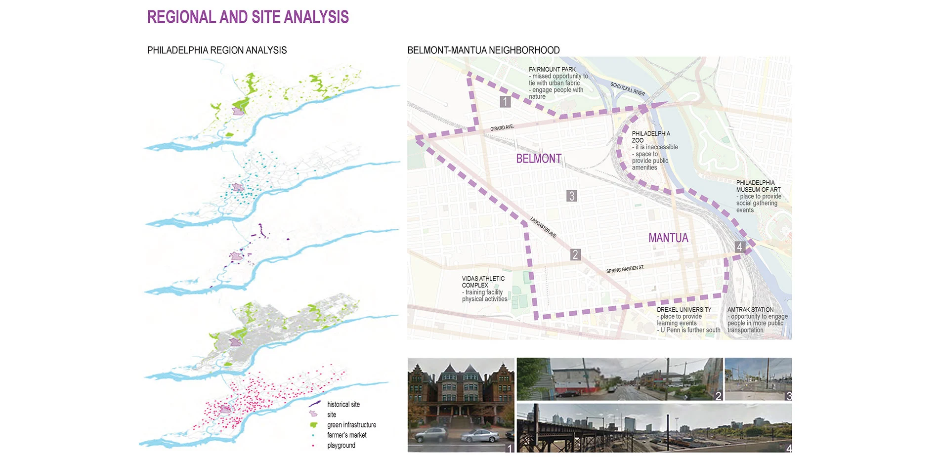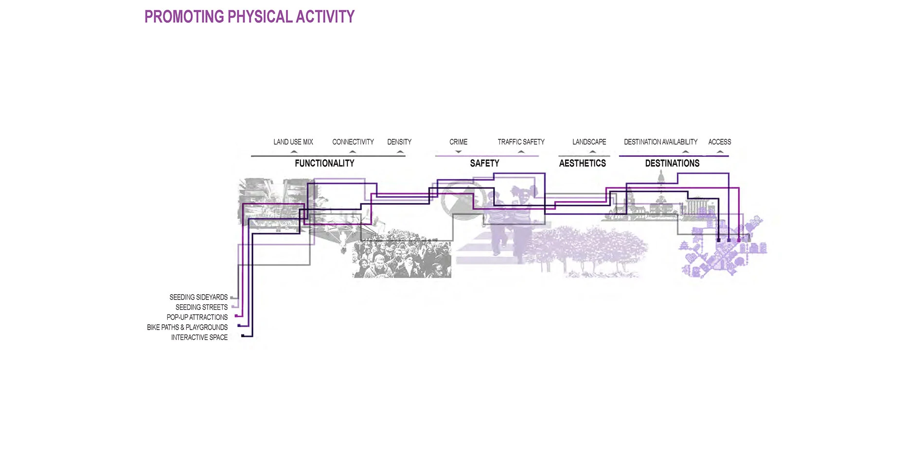 The Belmont/Mantua neighborhood in Philadelphia is facing considerable challenges of an economic downturn, increase in crime rate and lack of active living environment. As a result, streets have become deserted and health issues such as obesity and mental disorders have emerged. However, traditional design approaches that target public spaces cannot provide accessible destinations for all population in the dense neighborhoods.