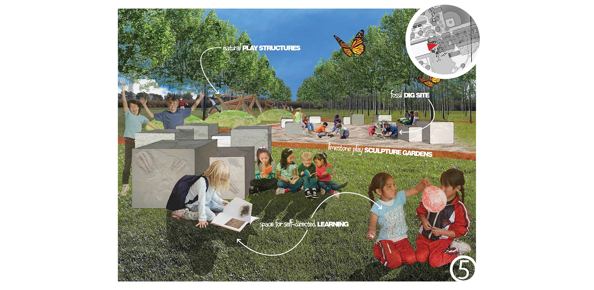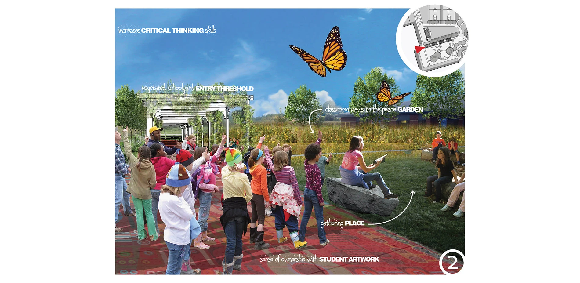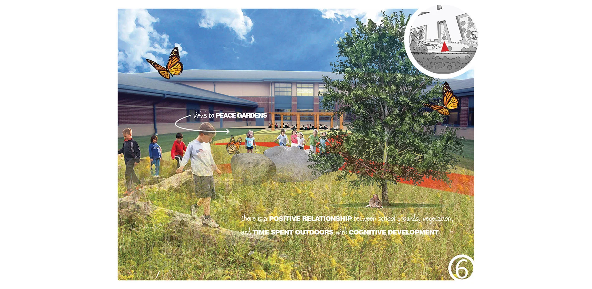 The project utilizes these research foundations and conceptually applies them to the schoolyard site at J.B. Stephens, a K-3 elementary school in Greenfield, Indiana. -