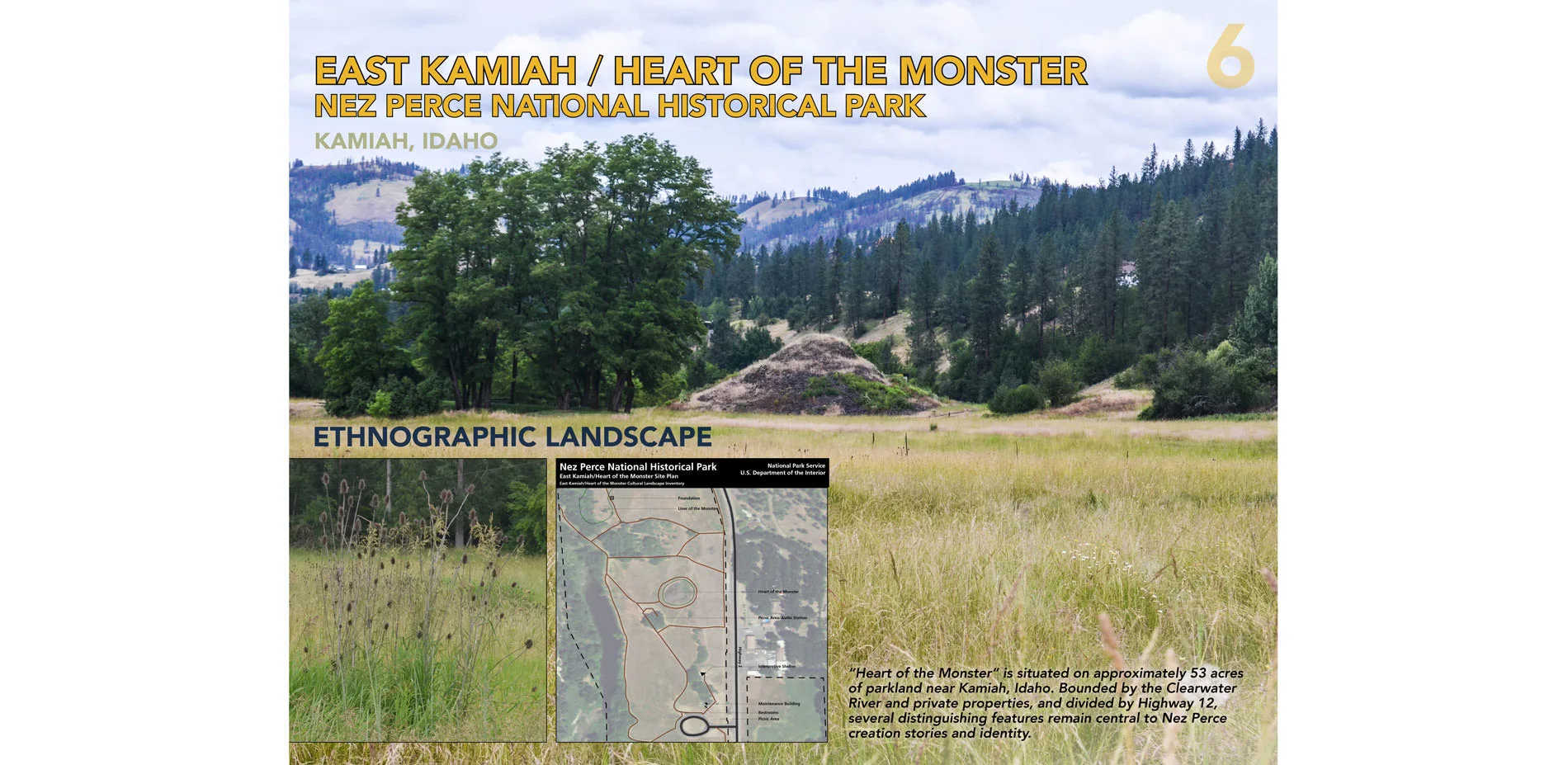 Six case studies were selected using three criteria: each is located in a different Pacific West Region eco-region; all cultural landscape types were represented (i.e., historic site, vernacular, design, ethnographic); park staff were available to participate and assist with fieldwork and research.