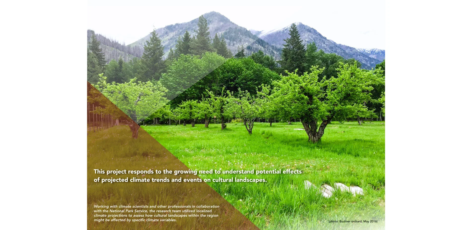 The study of climate change impacts on cultural landscapes in the Pacific West Region (PWR), of the National Park System, assessed how these landscapes might be affected by key climate variables, and developed recommendations for future research toward the agency’s goal of ensuring cultural landscapes’ resilience in light of climate change variables.