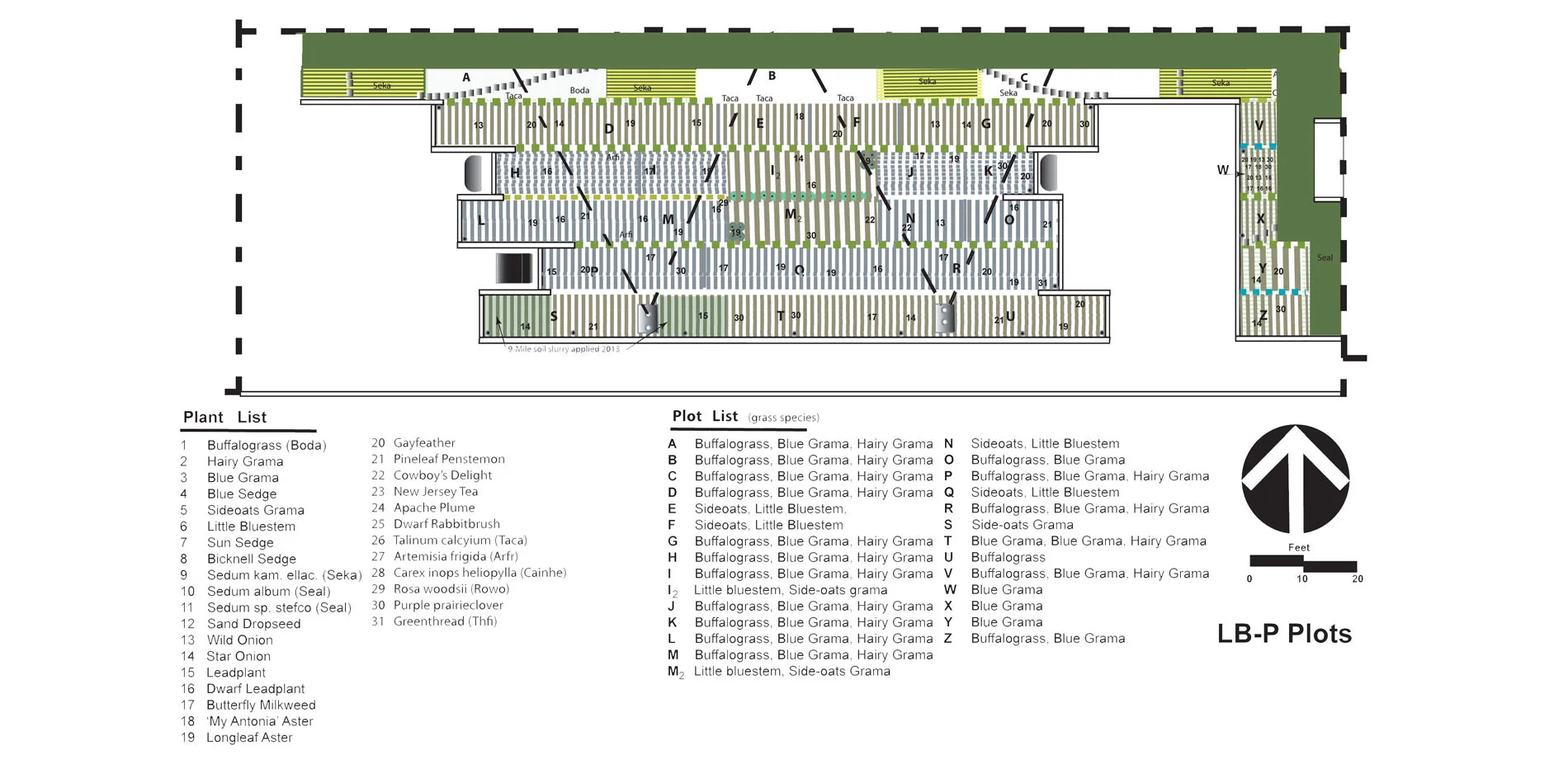 Each green roof venue (Table 1) presented its own unique design circumstances related to the cooperator’s goals, site microclimate, construction specifications, and installation that constrained the timing, relationship, and extent of experimental designs and comparisons (Table 2). The green roofs at Sandhills Publishing (SHP) and the Larson Building-Parkhaus (LB-P) were designed as green roofs which incorporated experimental plots.