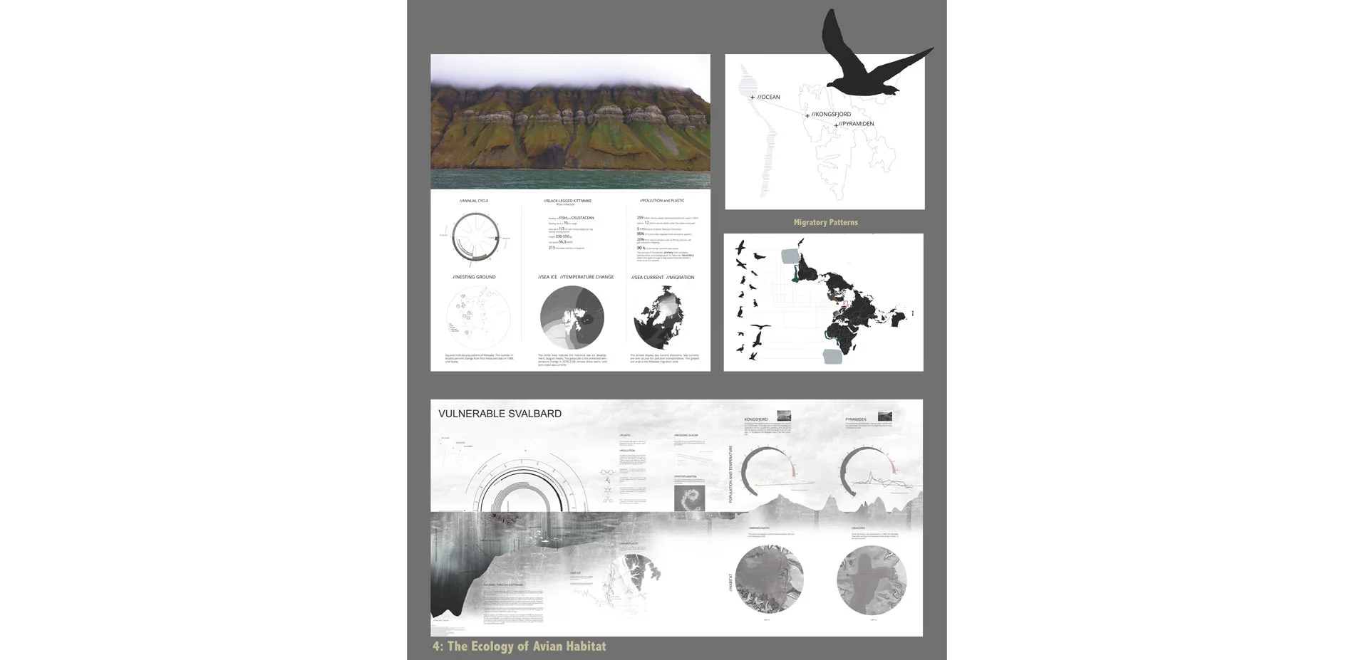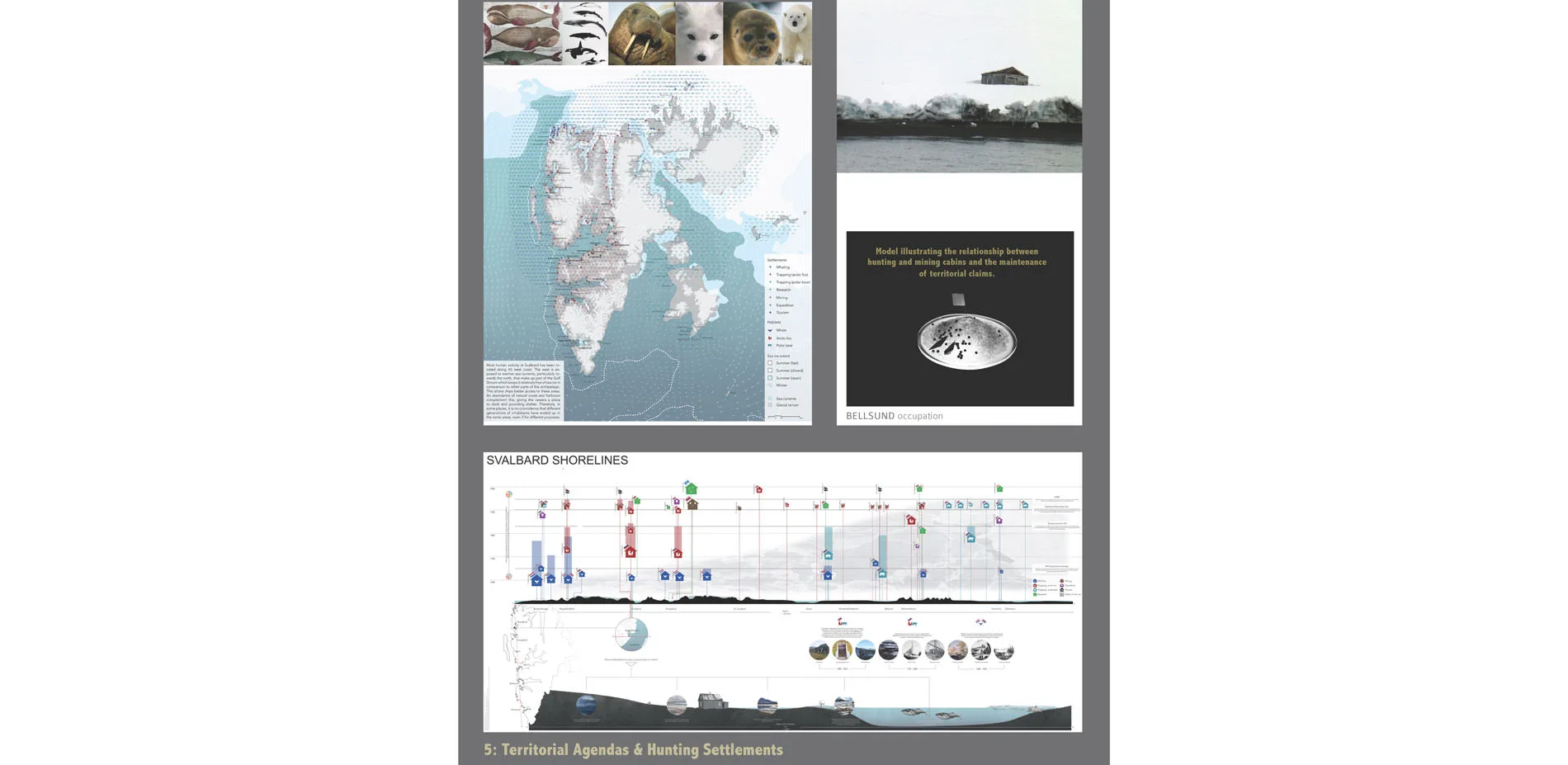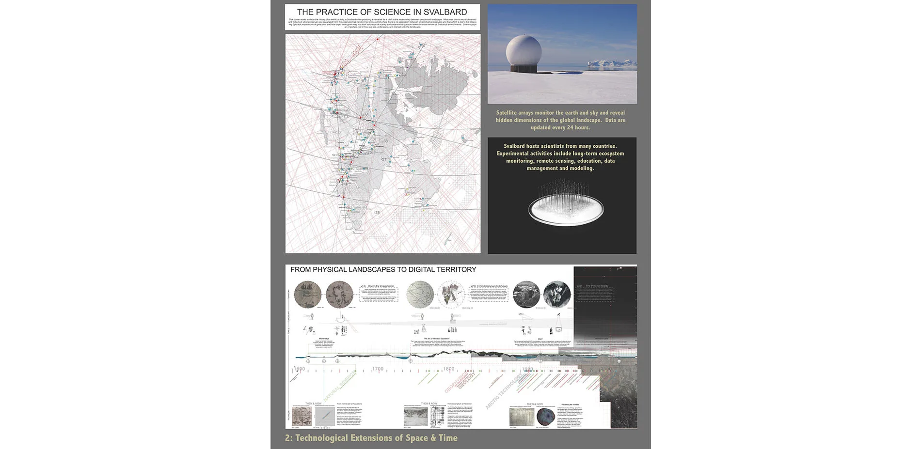 The climate, environment, demography, settlement patterns, and landscape of the Arctic are changing rapidly. This transformation has led to intense debates and extensive research regarding the future of the circumpolar north. The research project “Fluid Territory: A Journey into Svalbard, Norway” uses an iterative logic of giving and receiving to explore the potential future of this hyper-networked space. This is accomplished by illustrating how external influences, such as chemical pollution, tourism and resource extraction, impact the physical terrain and climate of Svalbard, and thus the migratory and habitation patterns of its marine and terrestrial organisms. Conversely, the project also illustrates how the territorial agency of Svalbard, as a repository of cultural heritage and through institutions devoted to science and satellite monitoring, extends outward to influence the global community. This study, conducted by a multi-national team of researchers, is noteworthy for its geographical extent, its innovative combination of cross-disciplinary information, its multi-scalar mapping techniques, and for the way it innovatively expands the future possibilities of the investigative terrain of landscape architecture.