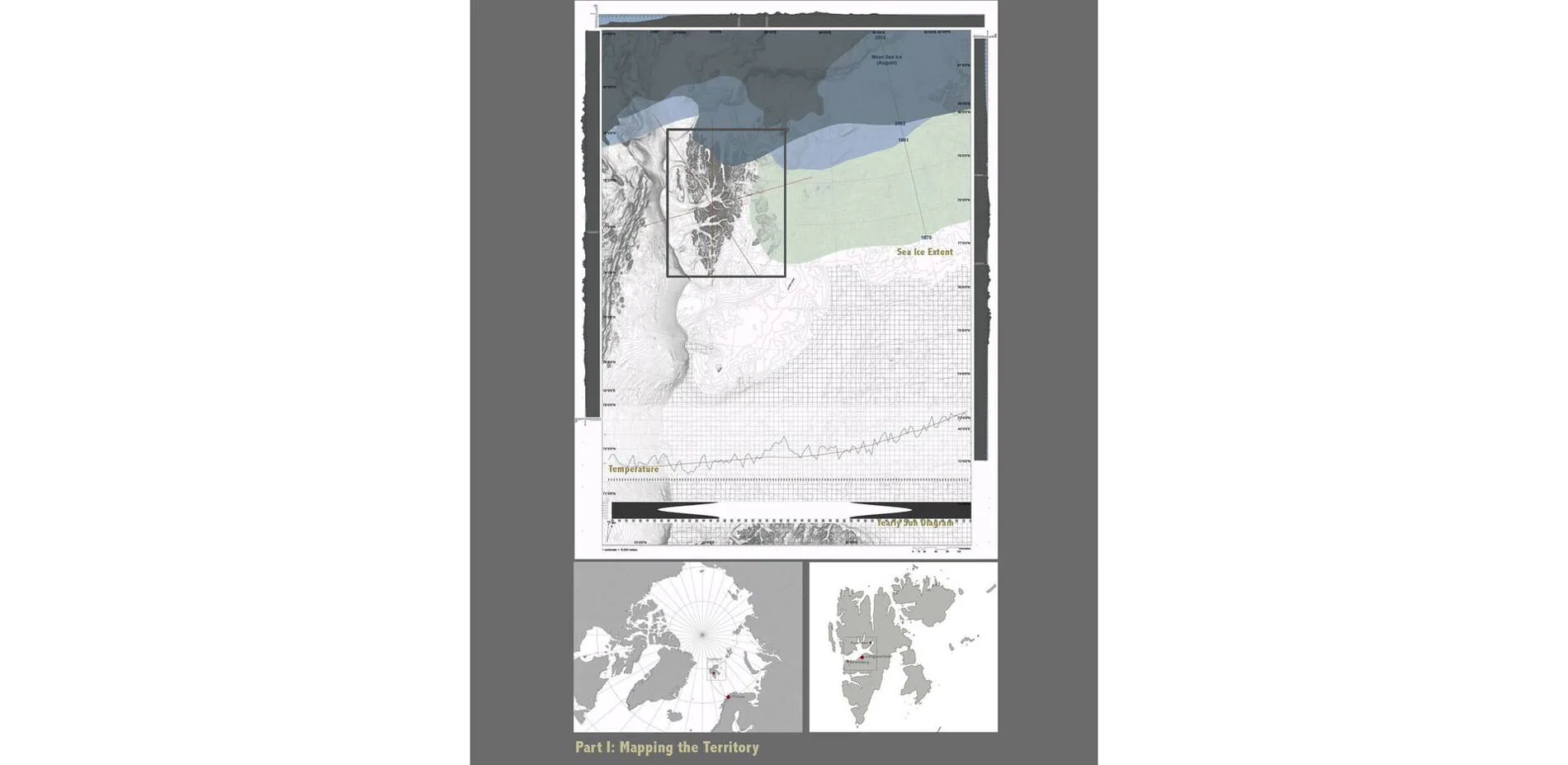 Today the environment, demography, settlement patterns, and landscape of the Arctic are changing rapidly in response to anthropogenic climate disruption. The transformation has lead to intense debates and extensive research regarding the future of the circumpolar north. “Fluid Territory: A Journey into Svalbard”, one of several interdisciplinary, critical mapping studies conducted under the auspices of the Future North research project, uses an iterative logic of giving and receiving to explore what the future may hold for this far-northern territory. This is accomplished by demonstrating how outside global influences, such as chemical pollution, tourism and resource extraction, have impacted the physical terrain and the climate of circumpolar north, and thus the migratory and habitation patterns of its marine and terrestrial organisms. Conversely, the study also illustrates how the territorial agency of the region, as both a repository of cultural heritage and a site of scientific data collection and geospatial satellite monitoring, has extended outward to influence the actions of the larger global community.