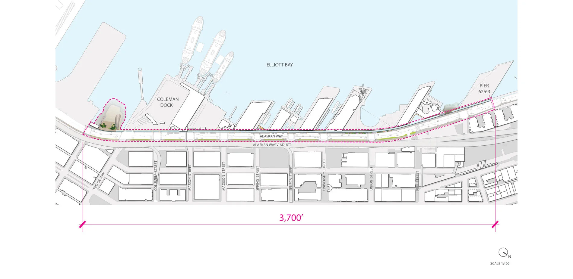 At the same time, the City of Seattle had embarked on a comprehensive redesign of its central waterfront, the centerpiece of downtown. The City saw an opportunity to integrate the two separate but adjacent projects, the CSP rebuild and the overall Central Waterfront design. Since the CSP was on an accelerated schedule, the lead Landscape Architect and Urban Designer for the Central Waterfront was asked to collaborate with the engineering-led CSP team in order to avoid re-doing portions of the waterfront and achieve a unified, cohesive public realm once all stages of the Central Waterfront project were complete.