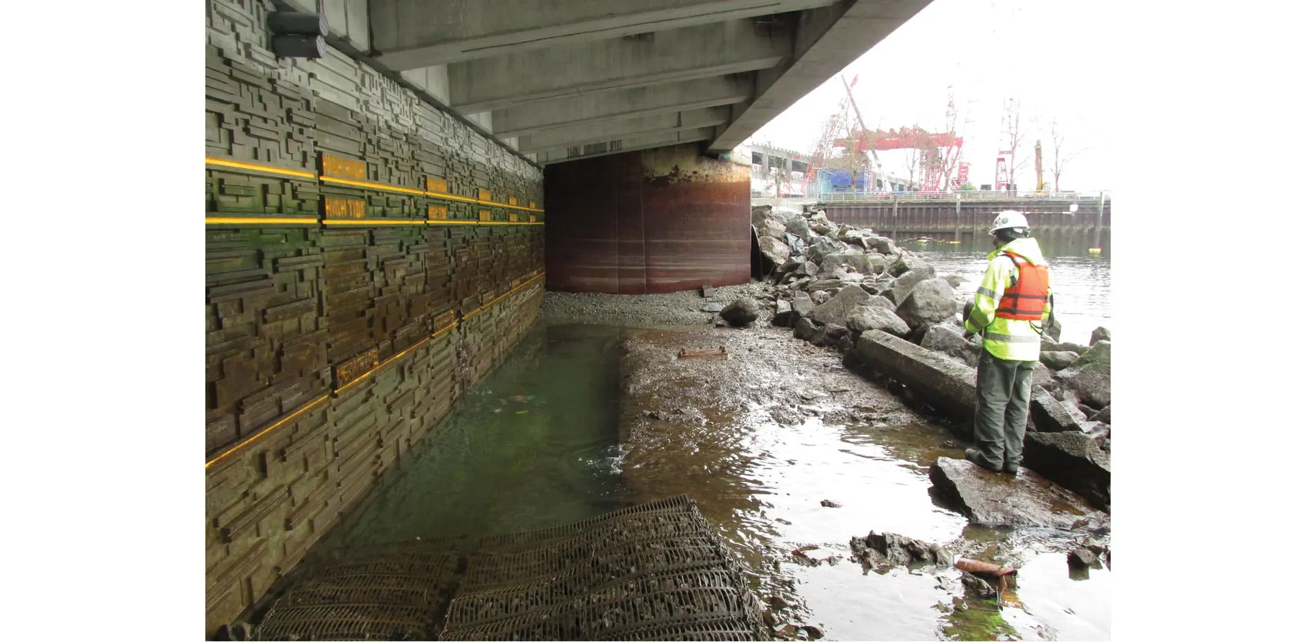 Seattle’s Central Seawall Project replaced 3,700 linear feet of derelict seawall with a new state-of-the-art, seismic-resistant seawall that is seamlessly integrated with an unprecedented salmon migration corridor, an enhanced tidal marine environment, and an updated pedestrian promenade. The Central Seawall Project is a massive urban infrastructure project which addresses current issues of sea level rise, ecology and aquatic habitat rehabilitation while in the center of a large port city.