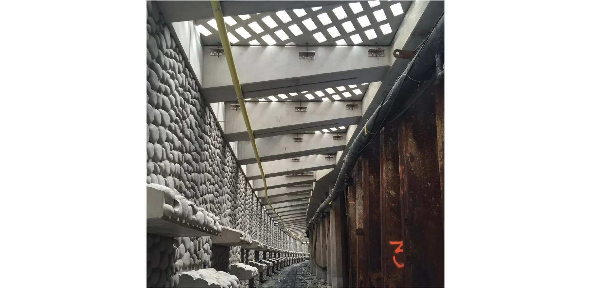 The custom solution features precast concrete LPS panels with glass pavers specifically shaped, oriented, and positioned to provide optimal natural light into the salmon corridor while also seamlessly connecting to the future Waterfront Promenade design and paving.