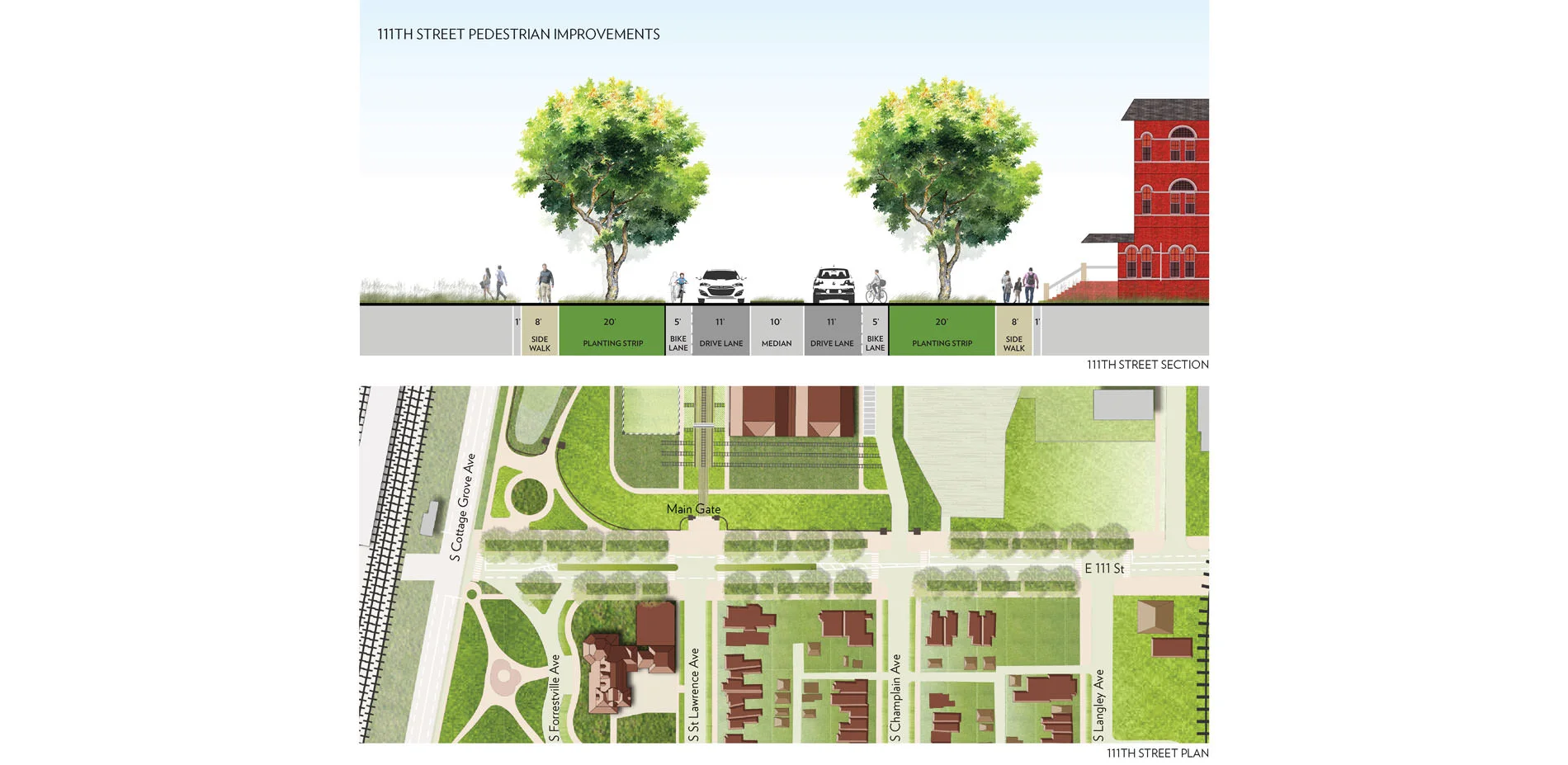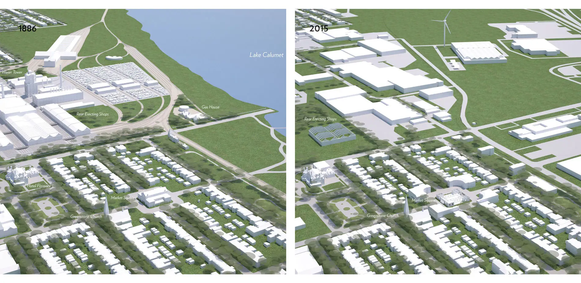 The Pullman Factory Complex is also envisioned to incorporate solar collectors, wind turbines, and rainwater harvesting features that reduce environmental impacts while also serving as educational features.