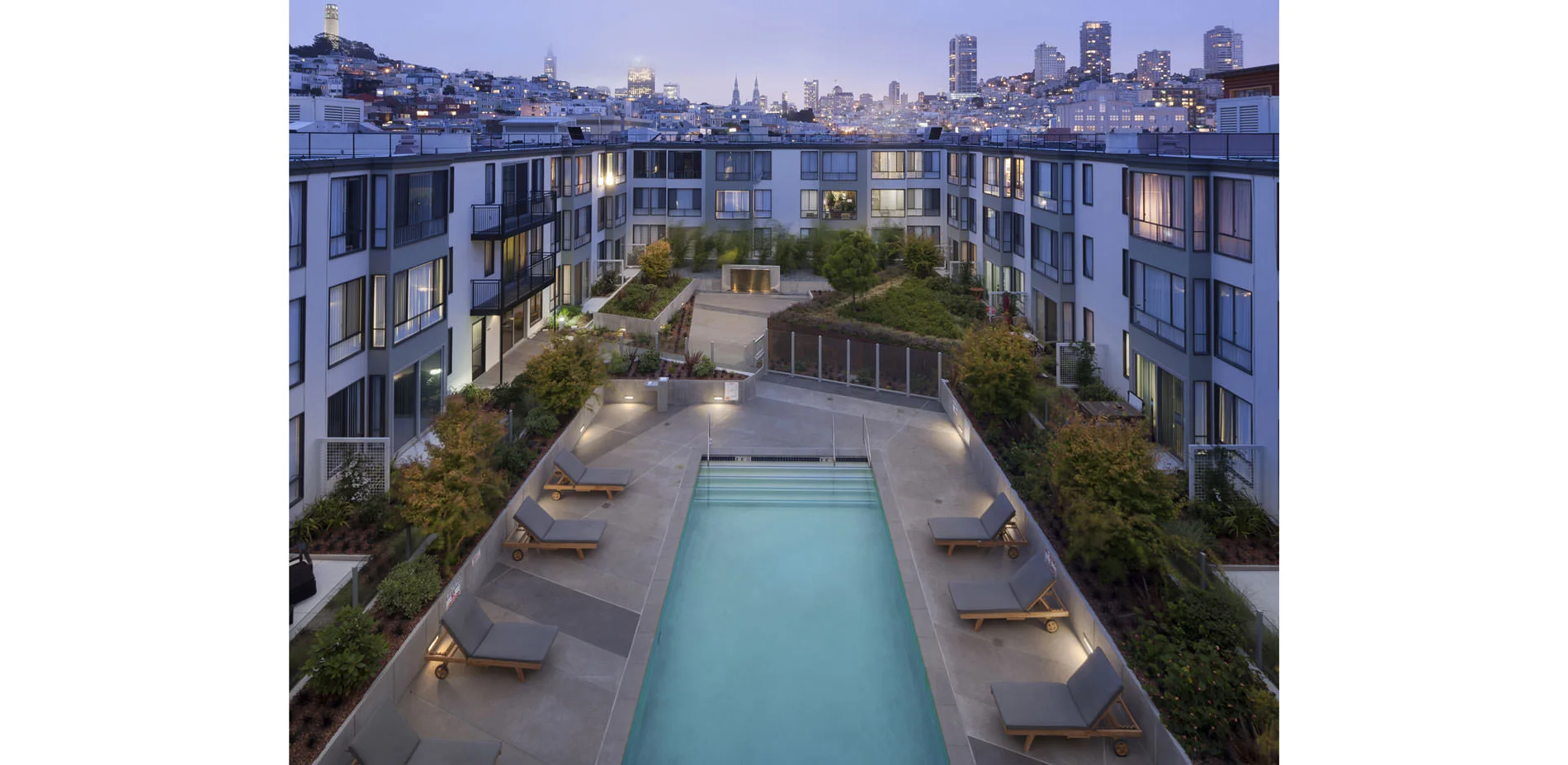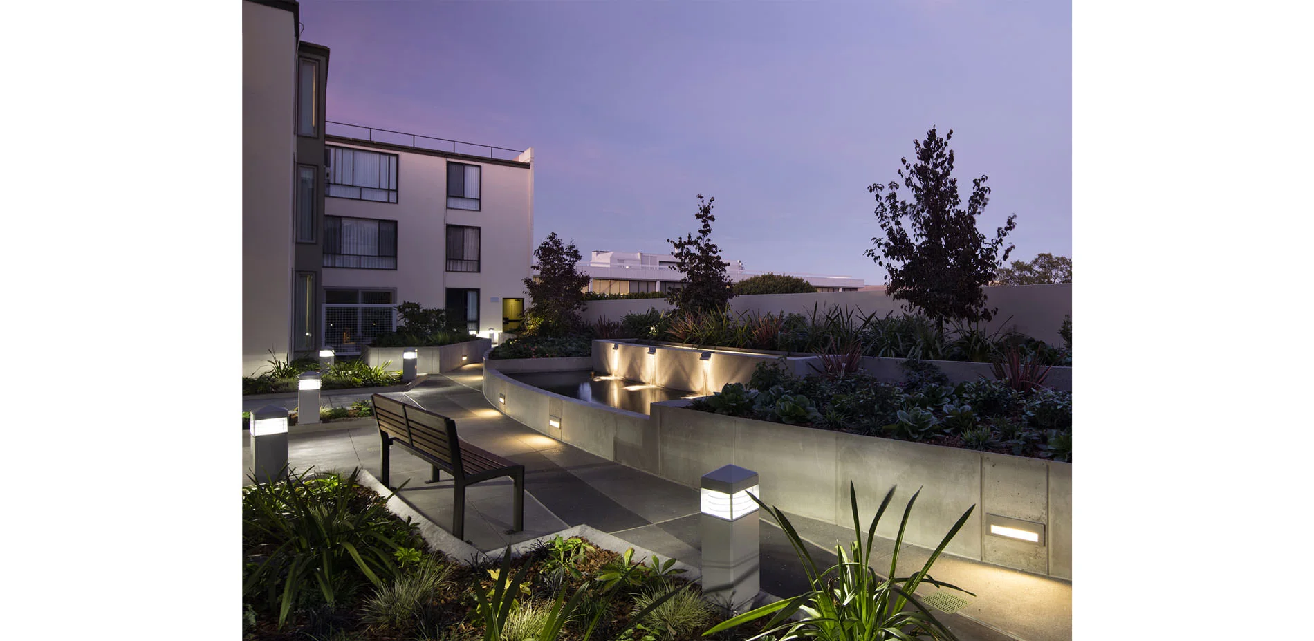 The NorthPoint Apartments, built in 1969 in San Francisco’s North Beach neighborhood, featured five courtyards designed by the office of Lawrence Halprin, located over podium parking. Half a century later, as the courtyard landscapes had to be replaced due to waterproofing failure, the design team successfully reinvented the project while meeting two aggressive challenges: honoring Halprin's legacy in a contemporary fashion; and reapportioning common and private spaces to meet changed expectations, within the tight constraints imposed by the original flat-slab construction. The strategy is one of carefully proportioned spaces, animated by finely detailed abstractions of the natural elements of water and stone: an homage to Halprin in the materials he used with such insight. All five courtyards — four fully interior and one at the adjacent property line — share forms and colors that pick up on the language of the surrounding buildings, but are differentiated from one another in their geometry, palette of plant materials, and focal elements.