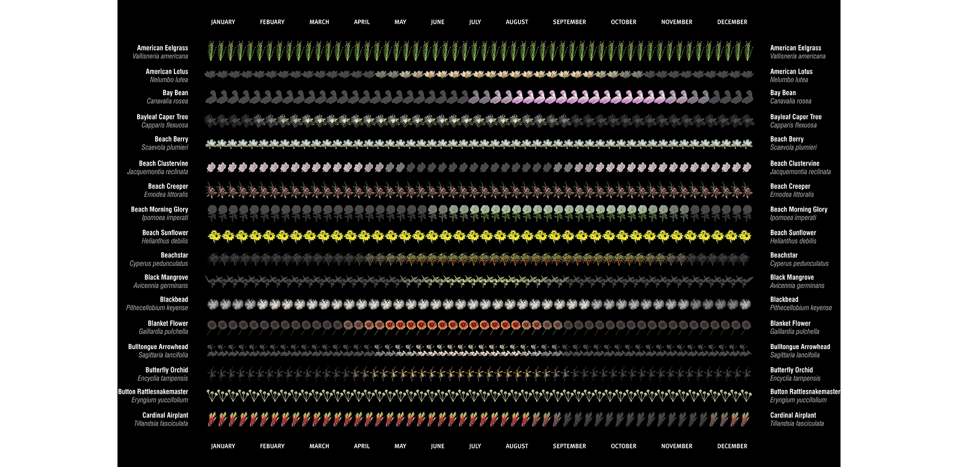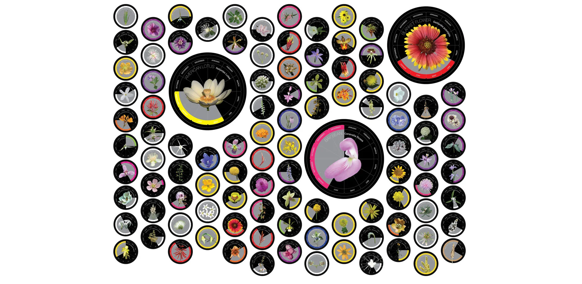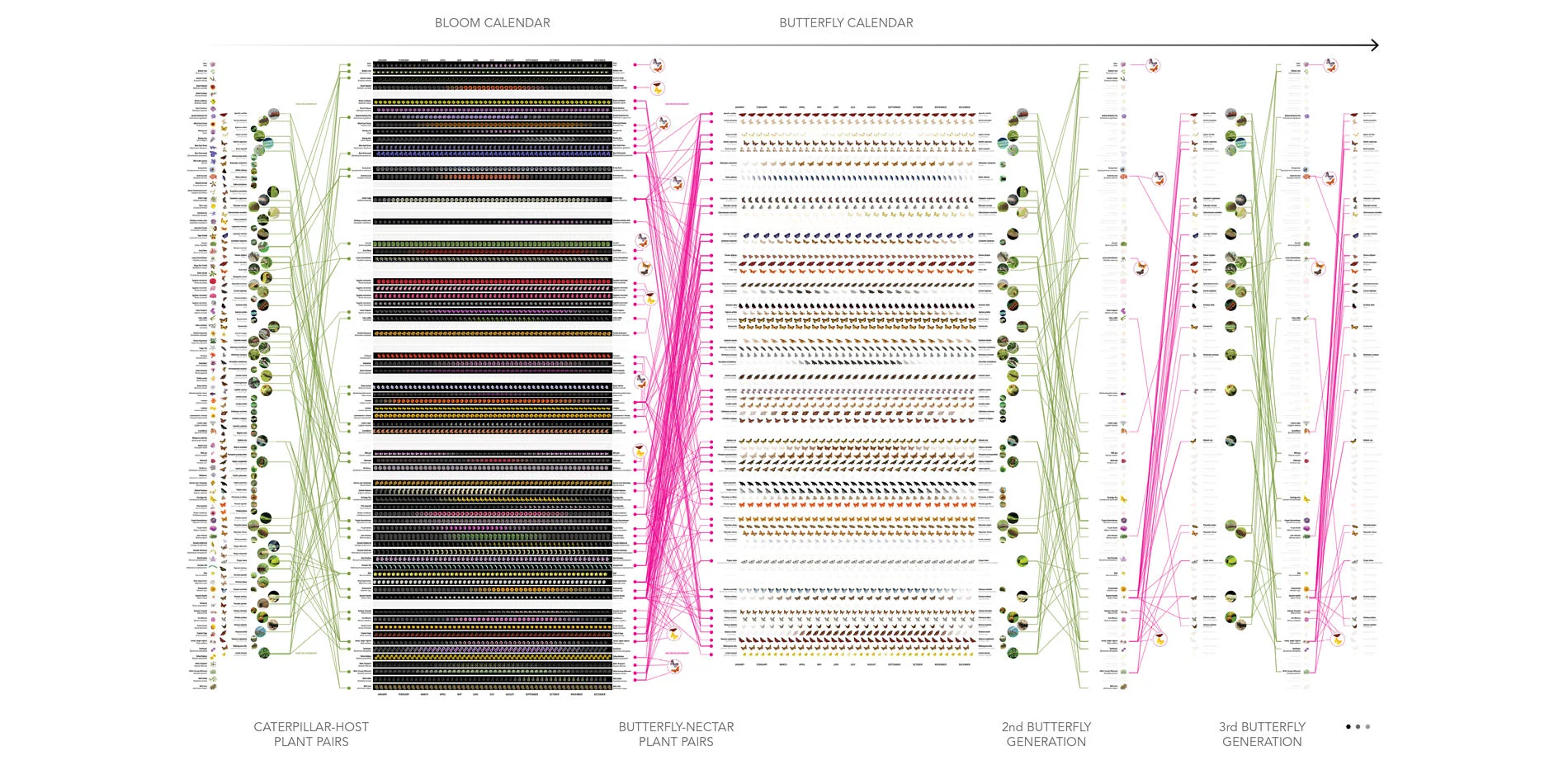 Understanding the complex relationship between living and built systems is fundamental to their meaningful and sustainable transformation and design. While extensive information on individual plants and animals is available to landscape architects in print and online, few resources give a holistic sense of ecological systems and fewer still provide a way of understanding their changes over time. The Ecological Atlas Project works at the intersection of art, science and technology. By developing intuitive mappings of natural patterns such as bloom times, deciduous patterns, vegetative seasonality, animal migrations and other time-dependent phenomena, the Ecological Atlas research project enables understanding and building in sustainable and resilient ways. Like mappings of the human genome, the Ecological Atlas Project provides an interpretive design tool that can be used to design and build in ways that work in tandem with the natural patterns of a site.