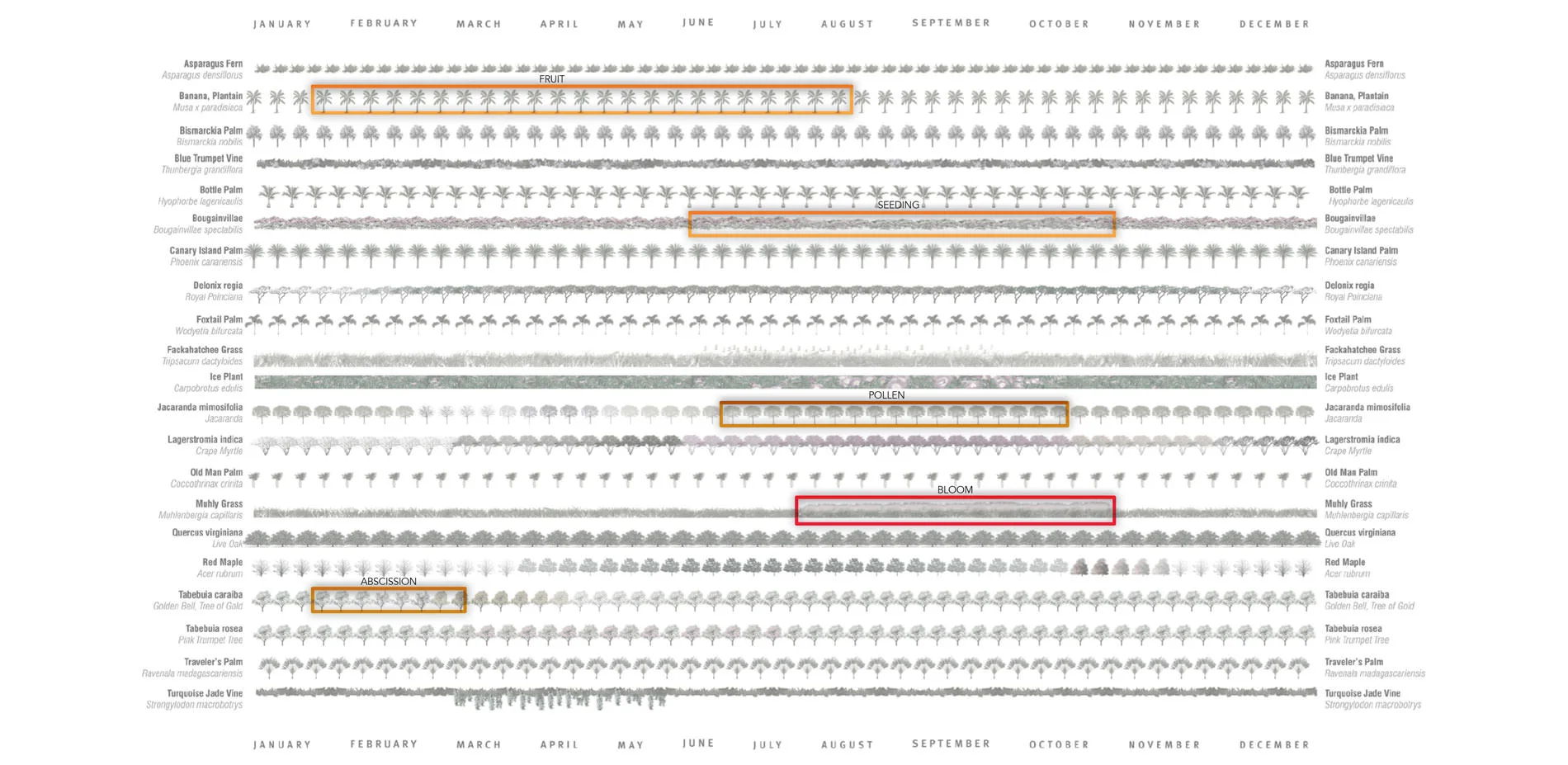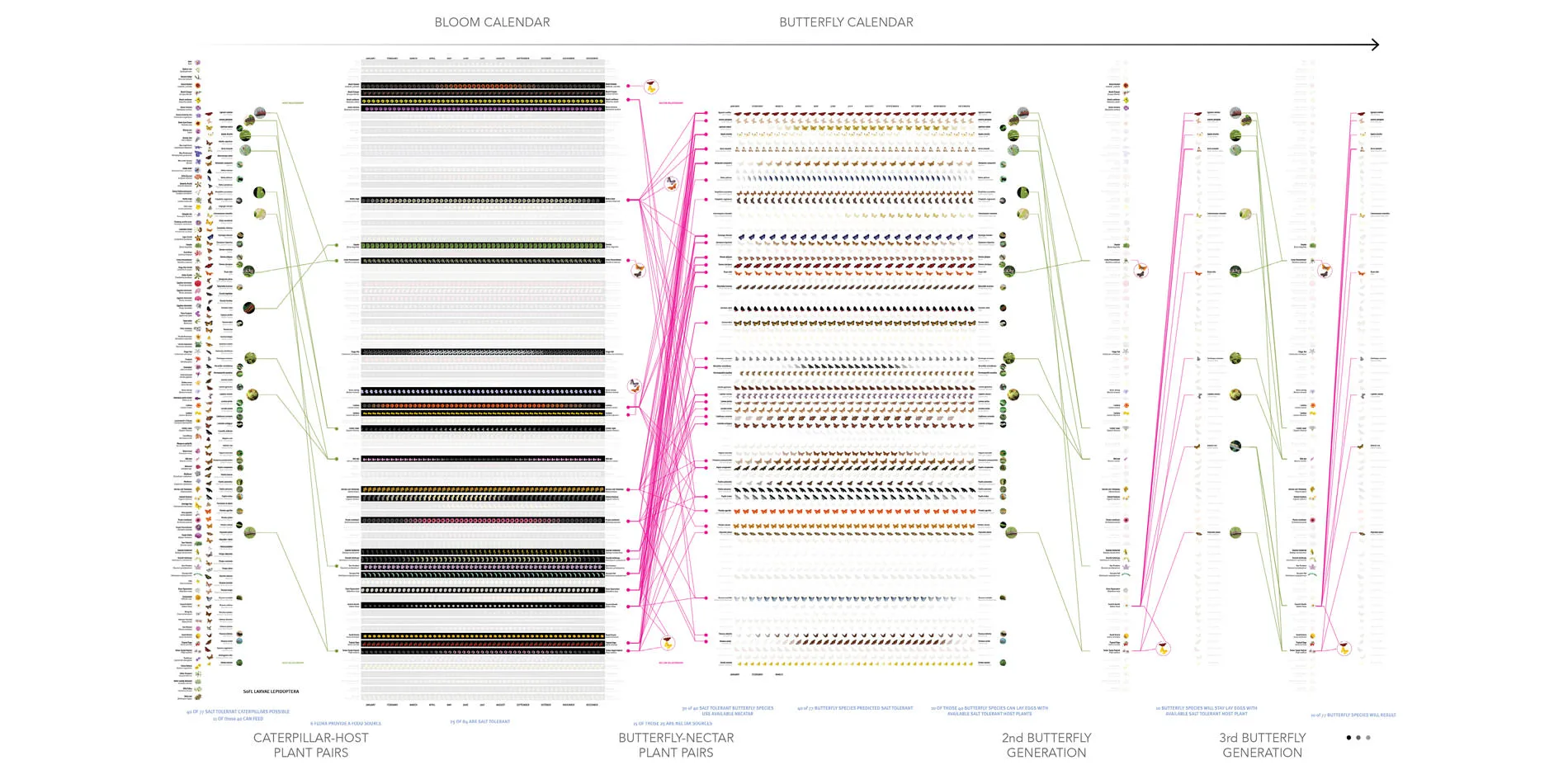 Tools that embrace technology and facilitate the transfer of landscape architectural knowledge in simpler and more elegant ways are essential to building ecological literacy. Better research tools are critical to making informed design decisions that strengthen the value of landscape architecture to any project. The Ecological Atlas Project builds a scalable research database and technology that advances the methods and techniques of landscape architectural research and practice. Some examples of how the Ecological Atlas Project could add value to a project include: sorting through thousands of possibilities and immediately identify the appropriate species, narrowed down and arranged to illustrate bloom times when working in an unfamiliar region; further narrowing the selection by design criteria such as salt tolerance, maintenance requirements, or water needs and generating a visual map that could be expanded digitally to communicate detailed information about each species; immediately identifying fruit trees and vegetables that will be in season in any given month based on geographic location; quickly understanding how a particular set of plants will maximize habitat value for native birds and butterflies. While it is certainly invaluable to consult regional experts who have an intimate understanding of local conditions, the Ecological Atlas Project aims to create a comprehensive resource that streamlines extensive bodies of knowledge and empowers landscape architects to design and make informed design decisions that consider context and time as essential to any design.