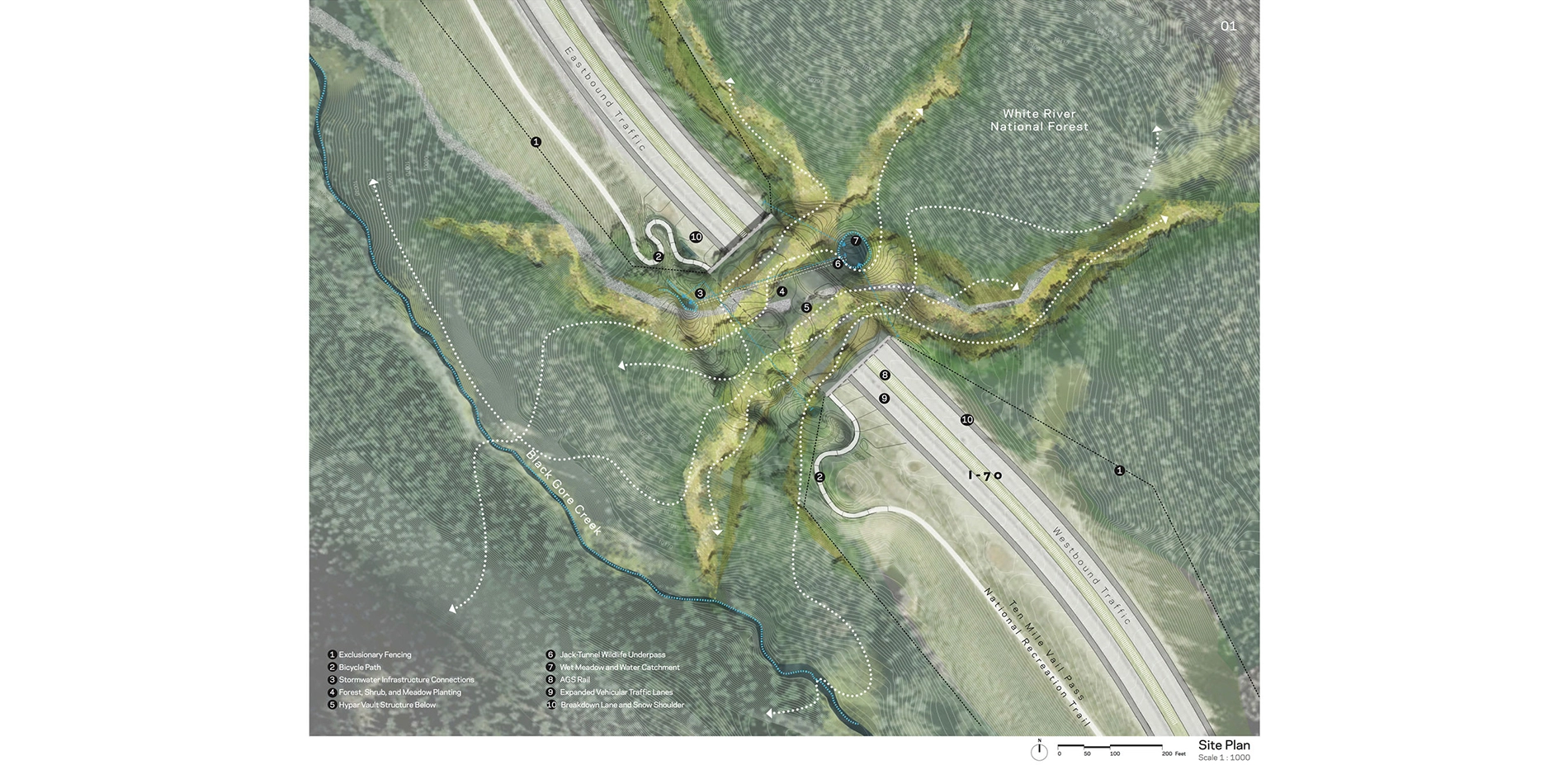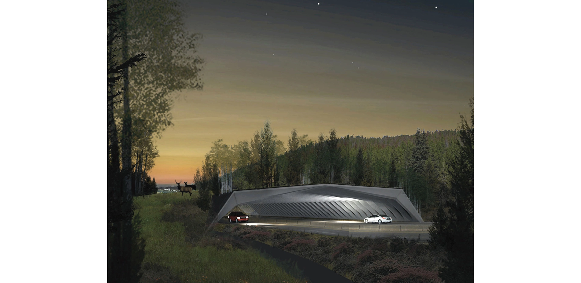 - Requiring all teams in the competition to include an interactive and educational component in their design, such as: interpretive pullouts for drivers, observation points and interactive transmission of real-time wildlife crossing data via smart phones