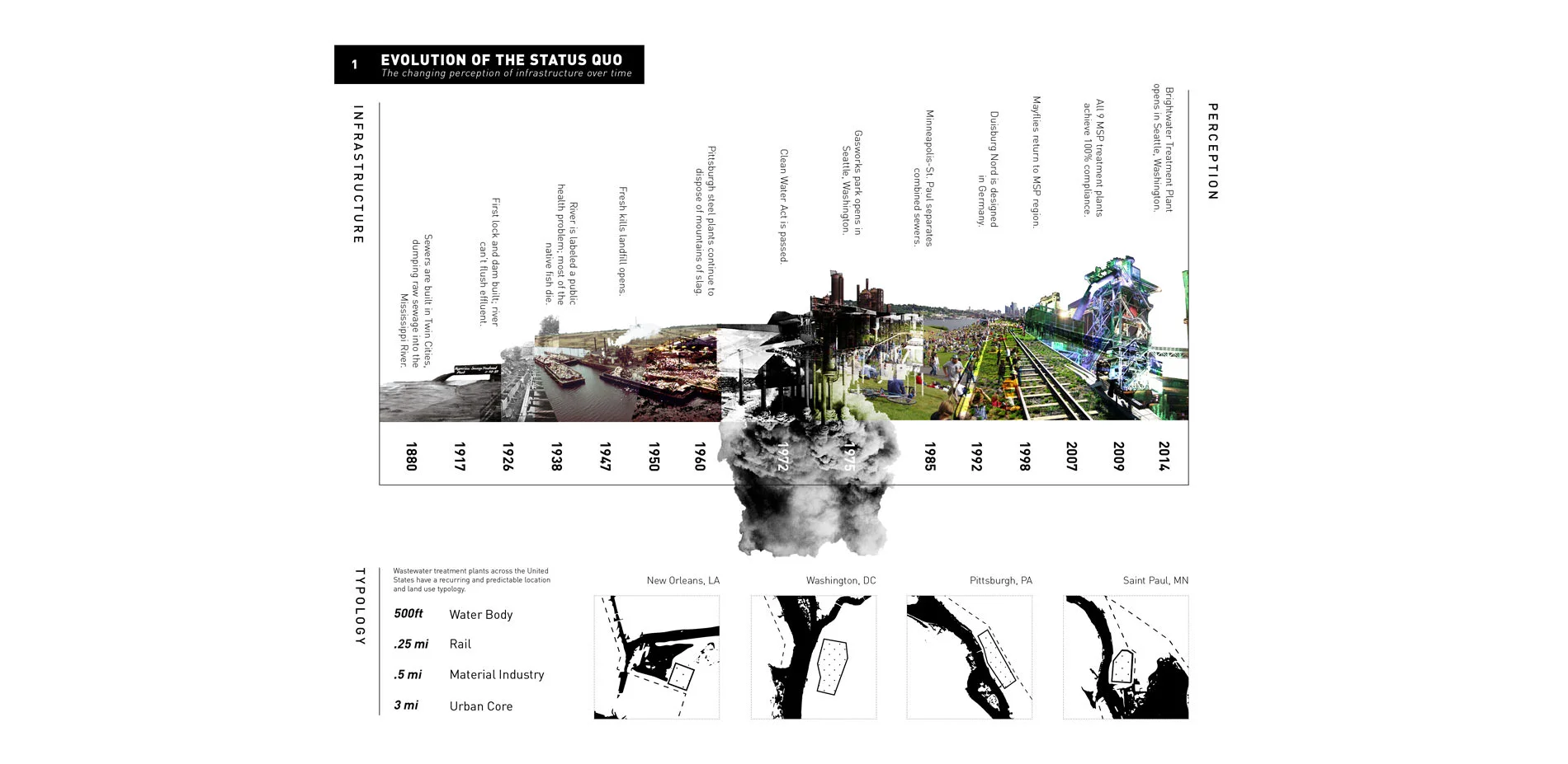 Though easily forgotten and often misunderstood, the infrastructures of wastewater treatment are inextricably linked with the pulse of our modern cities. Invisible Works is a public introduction to the dynamic life of wastewater treatment in St. Paul, Minnesota. It is a chance for people to engage in the active nature of treatment and simultaneously uncover its mysteries through experience. The intent is to transform the wastewater treatment plant from a marginalized system into a place that all can enjoy, acknowledging its importance as part of the public realm.
