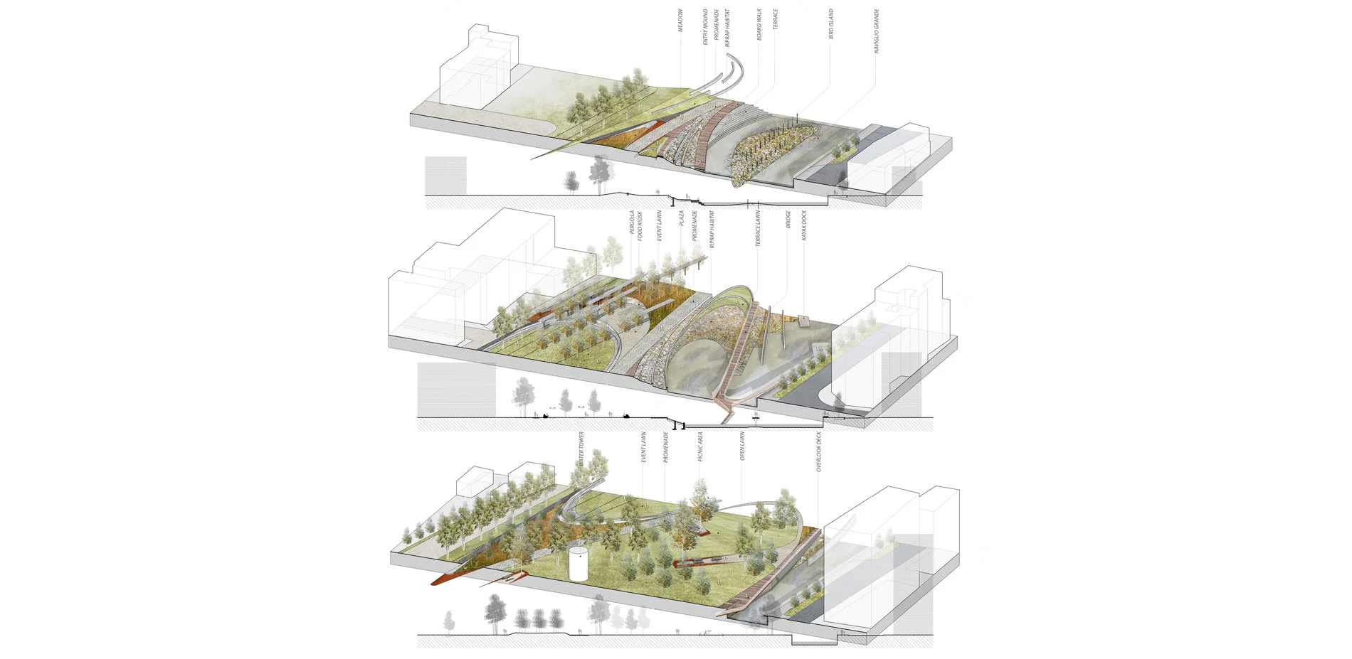 They successfully wrestle with the challenge of intervening in an already existing city without being nostalgic about its past, instead using landscape design to interpret a new vision.