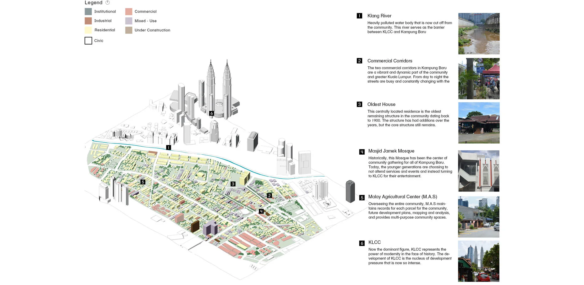 The project aims to breakdown the immense effect of urban shock the Petronas Towers have had on the community. While the structures themselves are new and taller, they help to provide the community members with a set of guidelines and rules that will help the proposed structures better fit into the community and reduce the immediate and long-term shock. What is the future rolee of architecture and landscape architecture when it comes to community preservation in the face of rapid urban development? We are those charged with designing new spaces and developments for all. We have the ability to speak for those who may not have a voice in their communities. And we have the capability to ensure that the systems, structures, and infrastructure both physical and metaphorical that are the backbone of a culture, community, or society are preserved and even championed over the shallow ambitions of others.