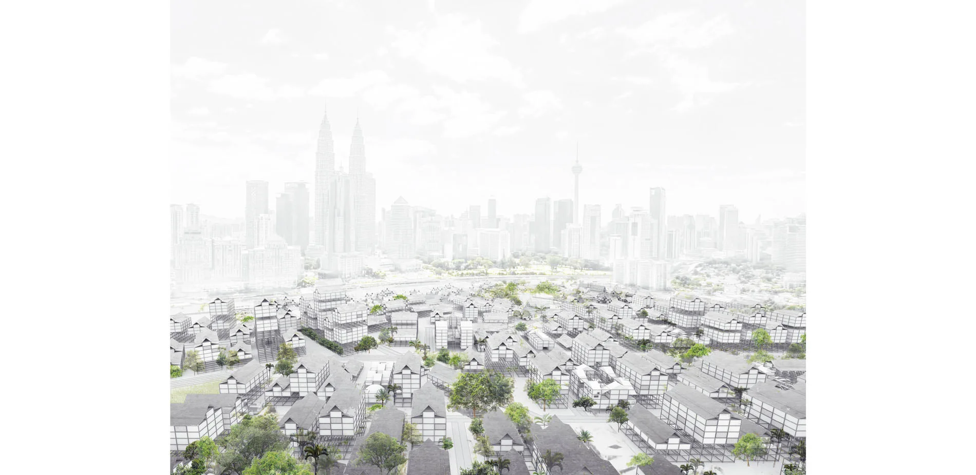 Kampung Baru is located directly adjacent to Kuala Lumpur City Center (KLCC). Founded as a Malay enclave by the British Empire in 1900, Kampung Baru has served as a cultural nucleus that was a draw for the Malay population and is now situated at the crossroads of Kuala Lumpur’s development path. The towering skyscapers that represent the new growth and development of the capital city have quickly surrounded the area, embodying the juxtaposition of modernity against tradition. It has become a critical issue for the city:which path they will take and champion?
