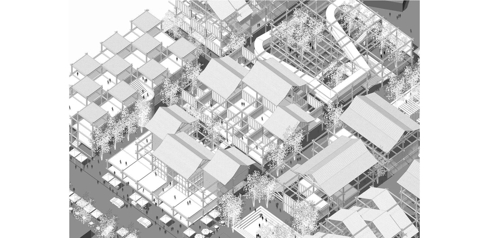 In the face of immense development in Kuala Lumpur, Kampung Baru stands as a last testament to the past historical and cultural heritage of the capital city. The project rebukes the proposed master plans completed and instead provides a new paradigm of micro-infrastructural development through which residential design and new forms of public space are championed. Working on a parcel level, property owners would be able to remain in the community they call home while also improving their lives and retaining and strengthening their community's identity and interaction.
