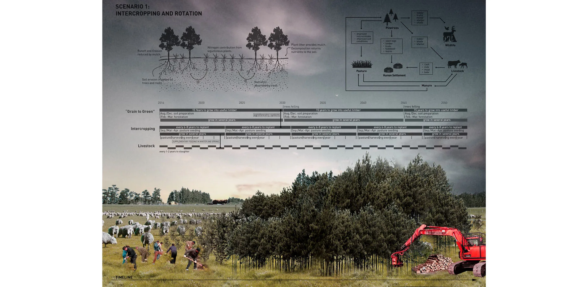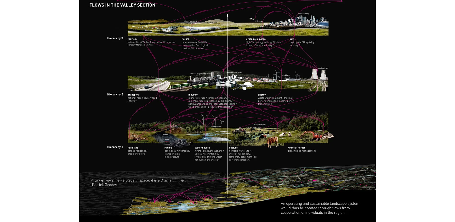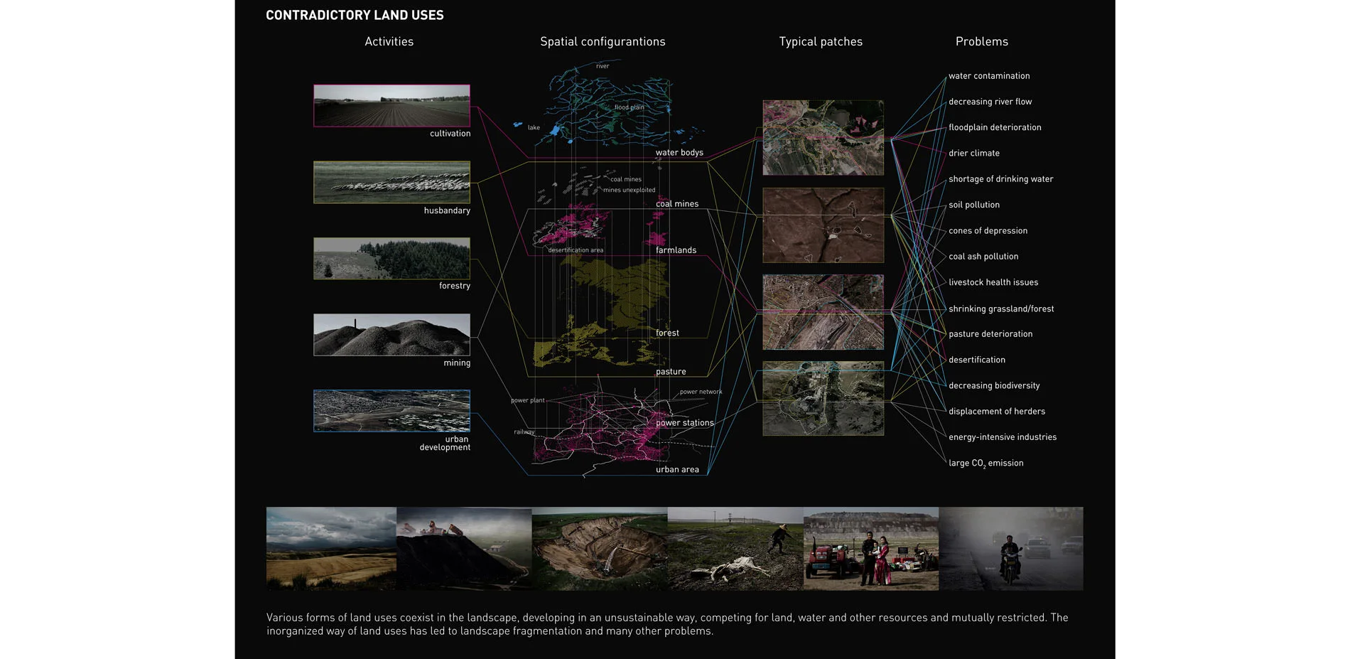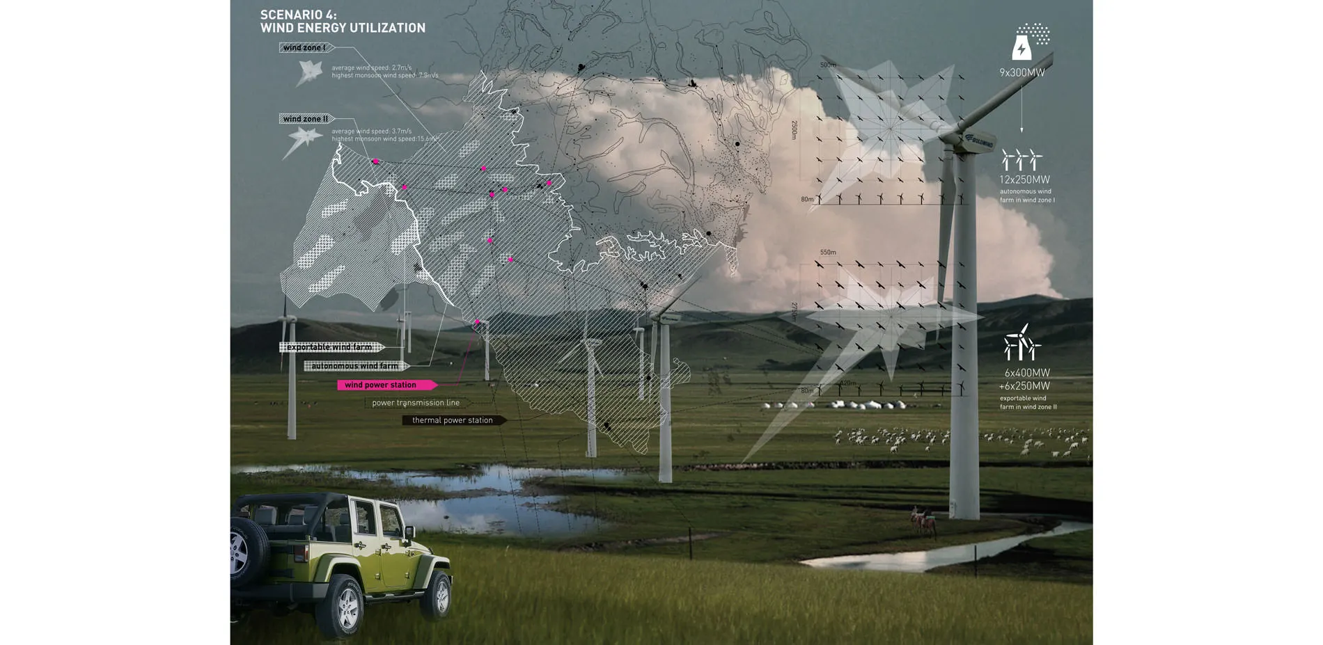 Rather than the static and defensive view of a picturesque Hulunbuir landscape, this design focuses on an operating and ever-changing process of the landscape system, and simultaneously taking the conservation of the natural and cultural landscape into consideration. Various dynamic layers are influencing the complex system of the landscape and urbanization, including: