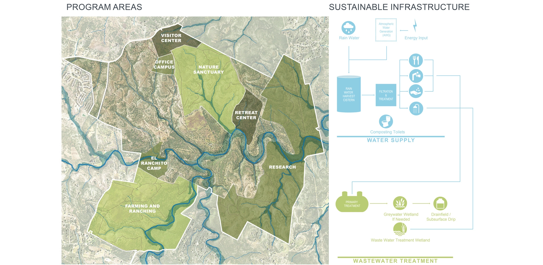 - Client-engaged GIS and smartphone app use - The team trained each working group to digitize and record 80 years' worth of family knowledge about the ranch; digitize and record visiting scientists' findings; ground-truth the analysis findings; test fit proposed program area design iterations; and identify future threats to the integrity of the ranch.