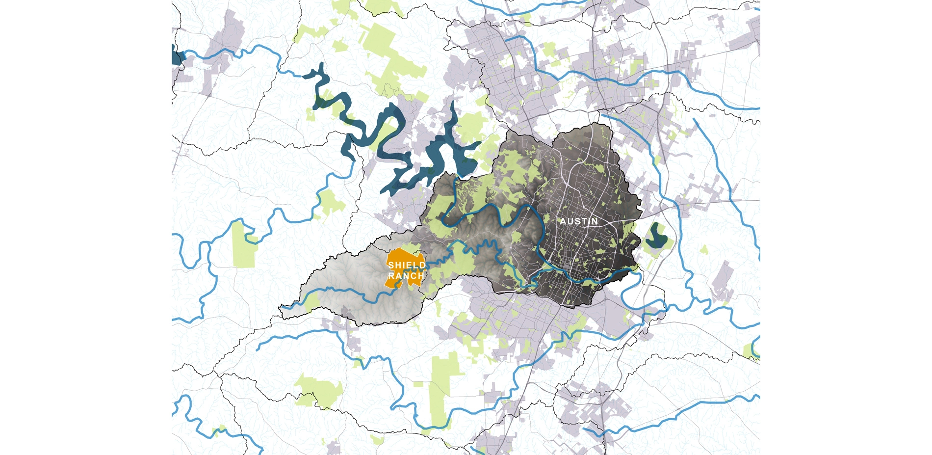 Ninety-five percent of Texas is privately owned, thereby providing land owners the unique capacity to enhance the landscape's ecosystem services, embed resiliency, and reinvigorate Texans about their distinctive natural and cultural environment. The Shield Ranch Master Plan demonstrates one family's evolving approach to land stewardship and advocacy during a pivotal point in their 80-year journey. To protect, connect, and share Shield Ranch's 6,800-acre, Austin, TX landscape with the next generation of family and community, the master planning team pioneered an innovative process for modelling and categorizing the iconic landscape's complex, natural and cultural systems. Using state-of-the-art digital tools; high–resolution, publically-available data; and on-site data collection with experts, the team and family collaboratively "read" the landscape and developed a highly-attuned network of new program areas. This master planning process is widely applicable to other land owners in the American Southwest and Texas who wish to advocate for sustainable land development, conservation, and enhanced resiliency within arid landscapes that are particularly vulnerable to climate change.