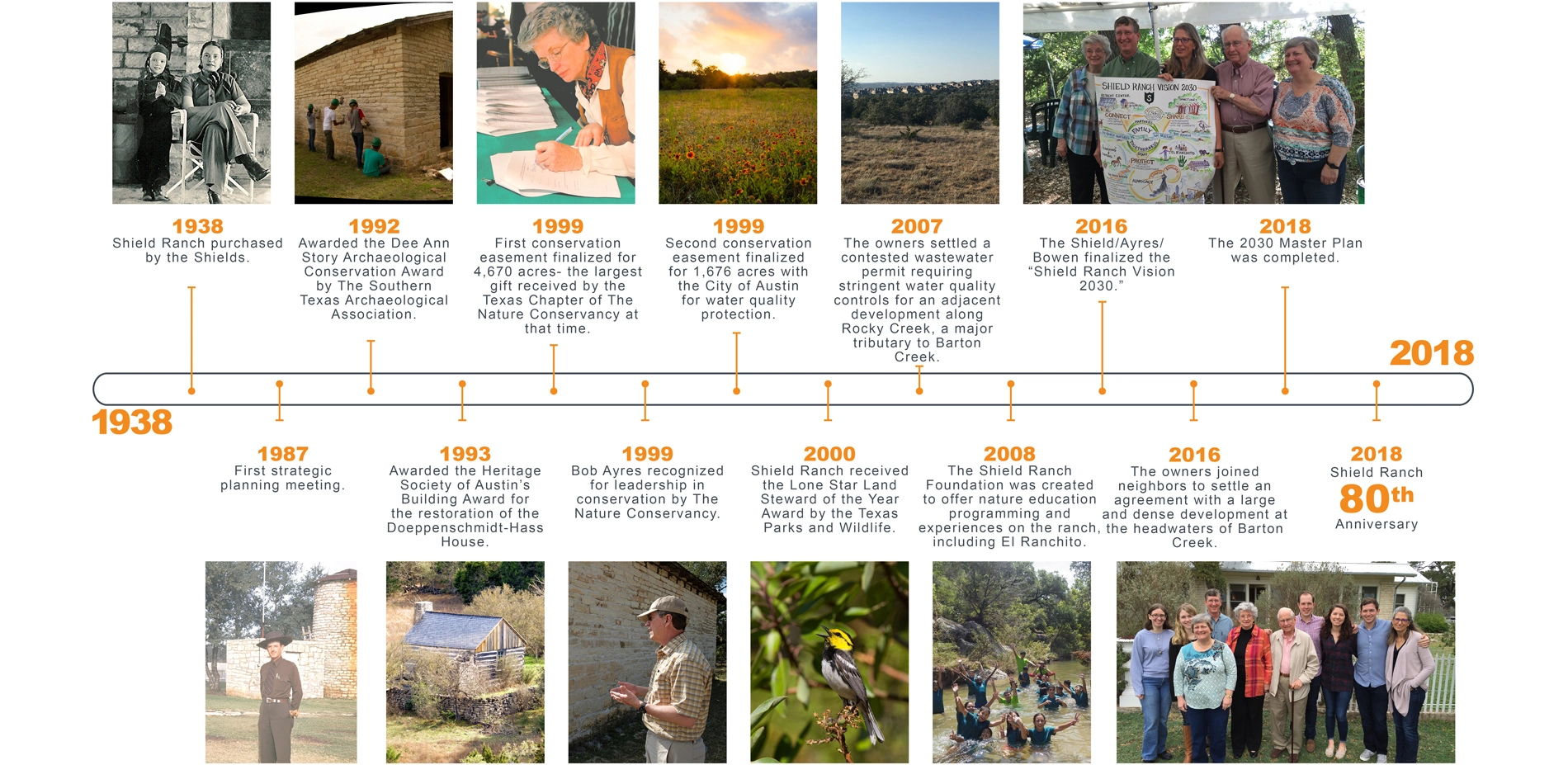 The Shield-Ayres-Bowen Family has maintained leadership in land stewardship within South-Central Texas for 80 years. The family heightened its long-term commitment to conservation and advocacy in 1998, when placing 95-percent of the family's 6,800-acre Shield Ranch under conservation easement, with an eye toward protecting water quality, water quantity, and sensitive habitats. Now, the family has committed to adapting their vision of Shield Ranch to the needs of future generations through an innovative, technology-driven master planning process, completed in 2018. The 10-year master plan integrated a pioneering process for modeling and categorizing the iconic landscape's complex, natural and cultural systems, with a consensus-building process for distilling long-term development and management priorities.