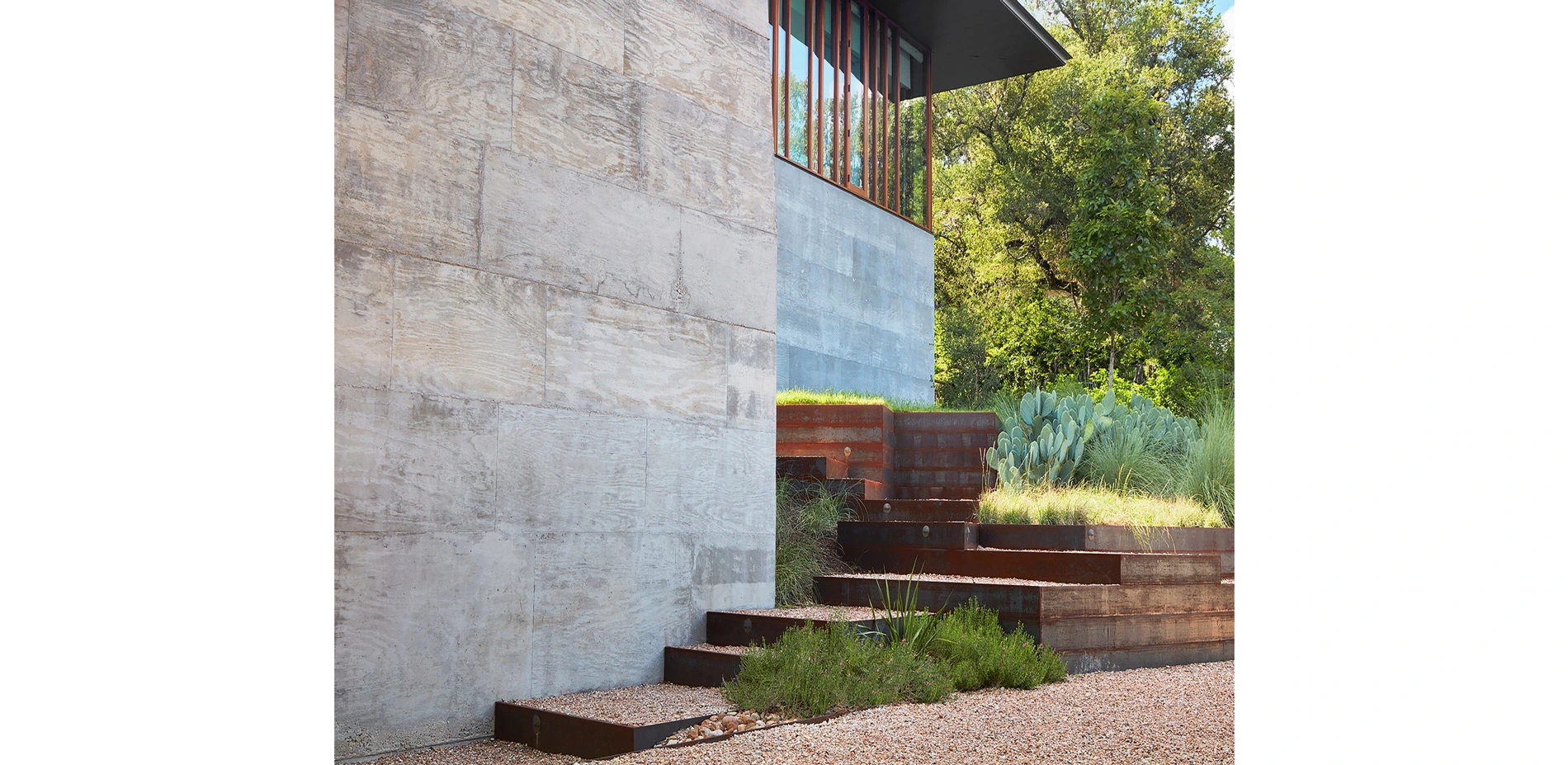 The restrained material palette underscores the elegance of the architecture and highlights the grandeur and simple beauty of the Texas landscape.