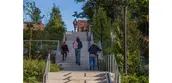Over thirty feet of grade change occurs on the previously overgrown south slope of the Park. The design reclaims this landscape, extending the Park into the parking lot below, allowing for an occupiable hillside. A series of accessible walkways, a stairway and gathering spaces for amphitheater-style events now offers historic views to the Holyoke Range, and the slope is restored with indigenous river plants. The main thoroughfare re-connects the Park, and downtown, directly to the Norwottuck Rail Trail and the Mill River Ghost Walk.