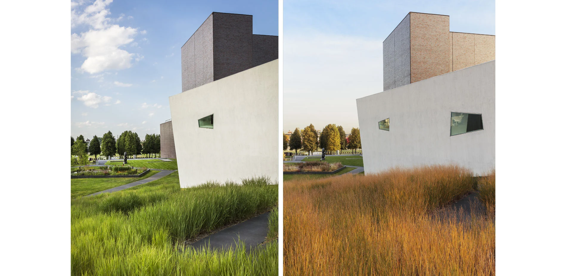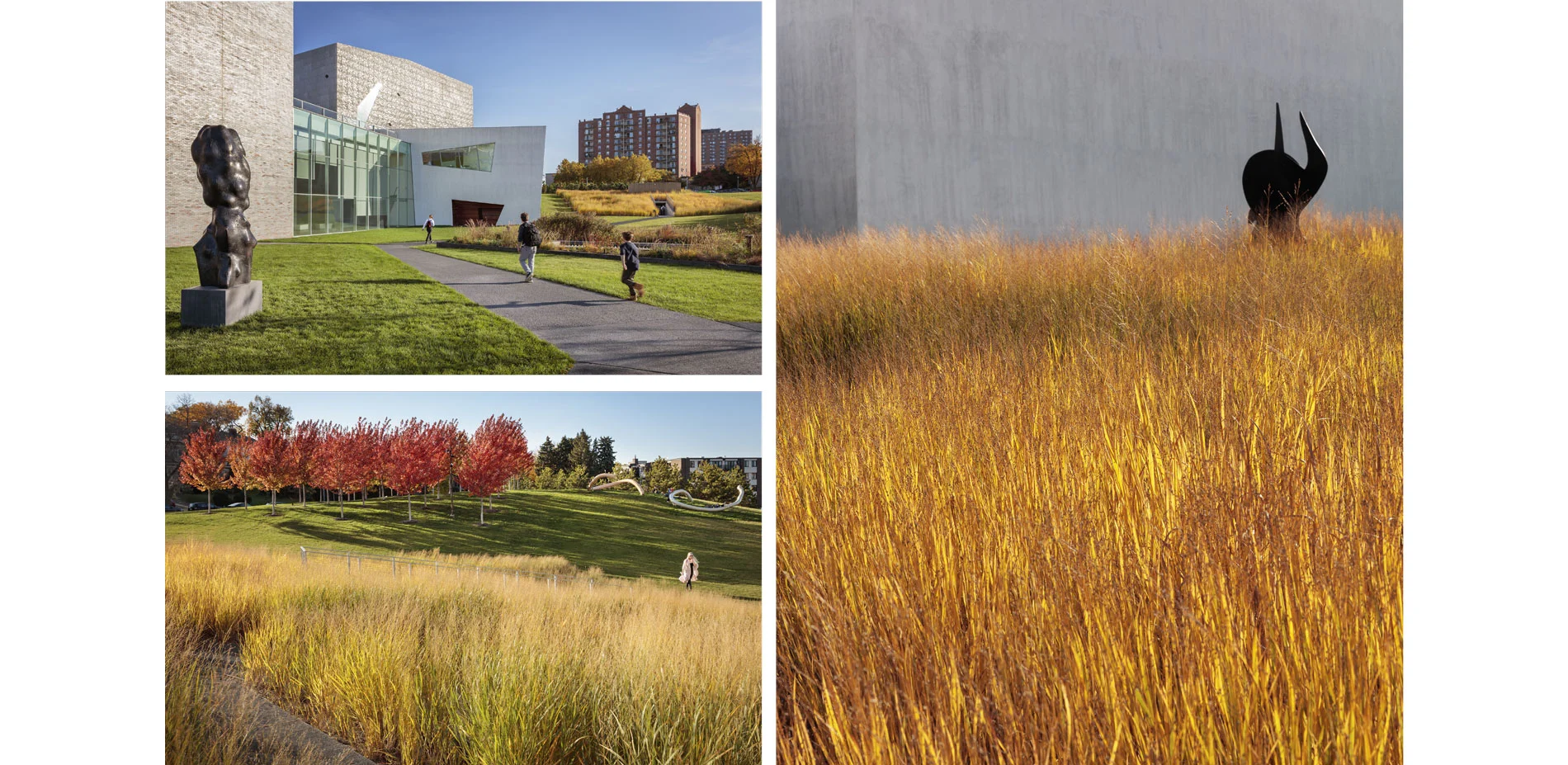 The design landscape architect worked in concert with the design architect to create, a new vision for the campus. The design concept of a new building addition within a garden created a more visitor-friendly and welcoming entry experience. The new addition is now the epicenter of the Walker Art Center's campus and strengthens the museum's identity and presence. The updated garden campus is comprised of twelve varying plant material Volumes that are expressed by masses of shrubs, ornamental grasses, and formal geometric bosques of trees or a crisp, faceted plane of lawn holding a beautiful sculpture.