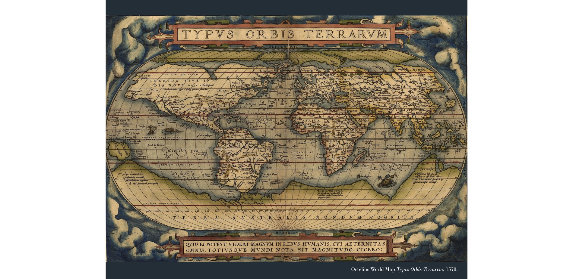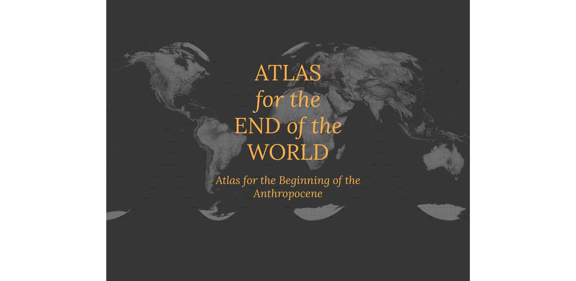 The world's first atlas, the Theatrum Orbis Terrarum (Theatre of the World) was published in 1570 by Abraham Ortelius of Antwerp. In crude outline, the Theatrum laid out the world and its largely in-tact ecosystems for imminent colonization. Almost 450 years later, this 'Atlas for the End of the World' rakes over the remains. Of course, it is not the end of the world at all, rather, it is the end of Ortelius' world - a world where it was thought ecosystems (and peoples) could be exploited without consequence, ad infinitum.