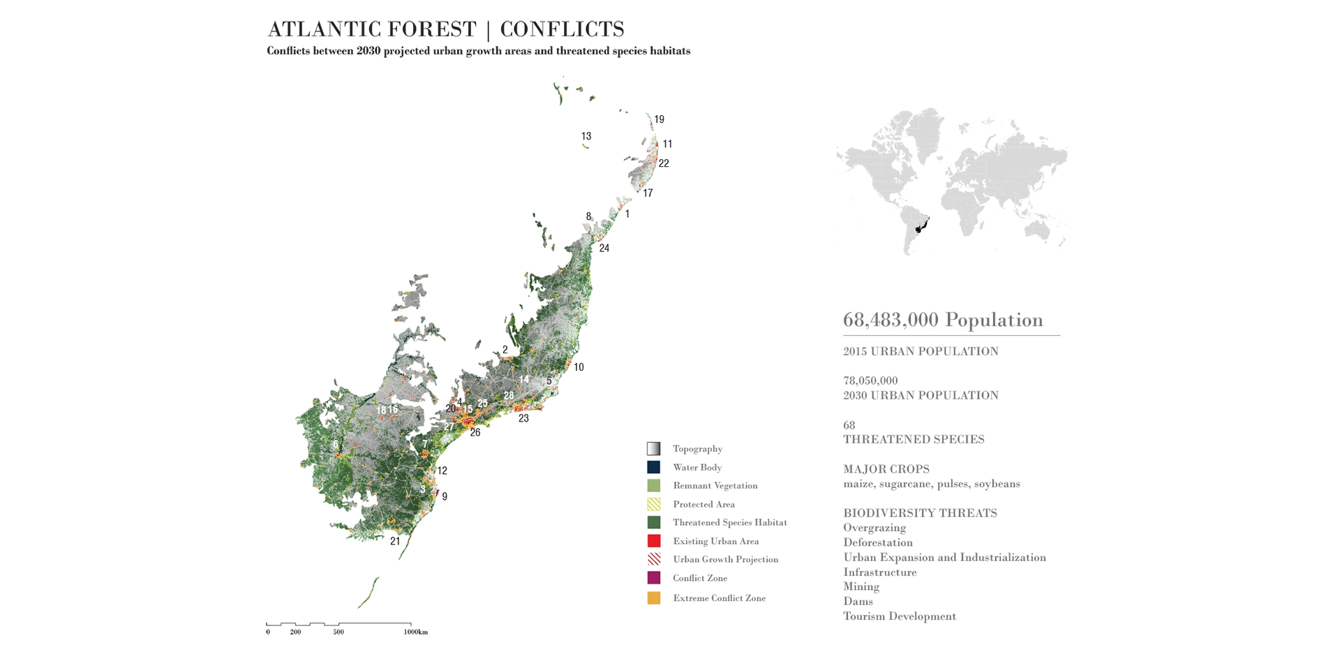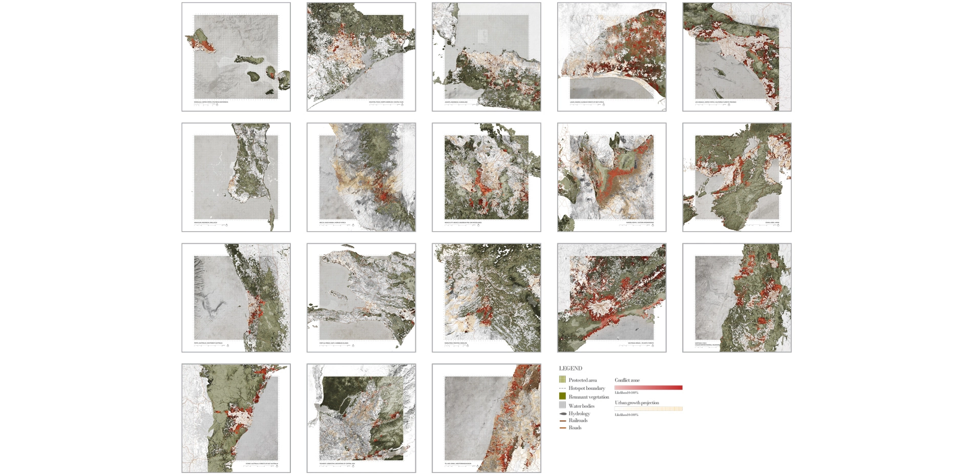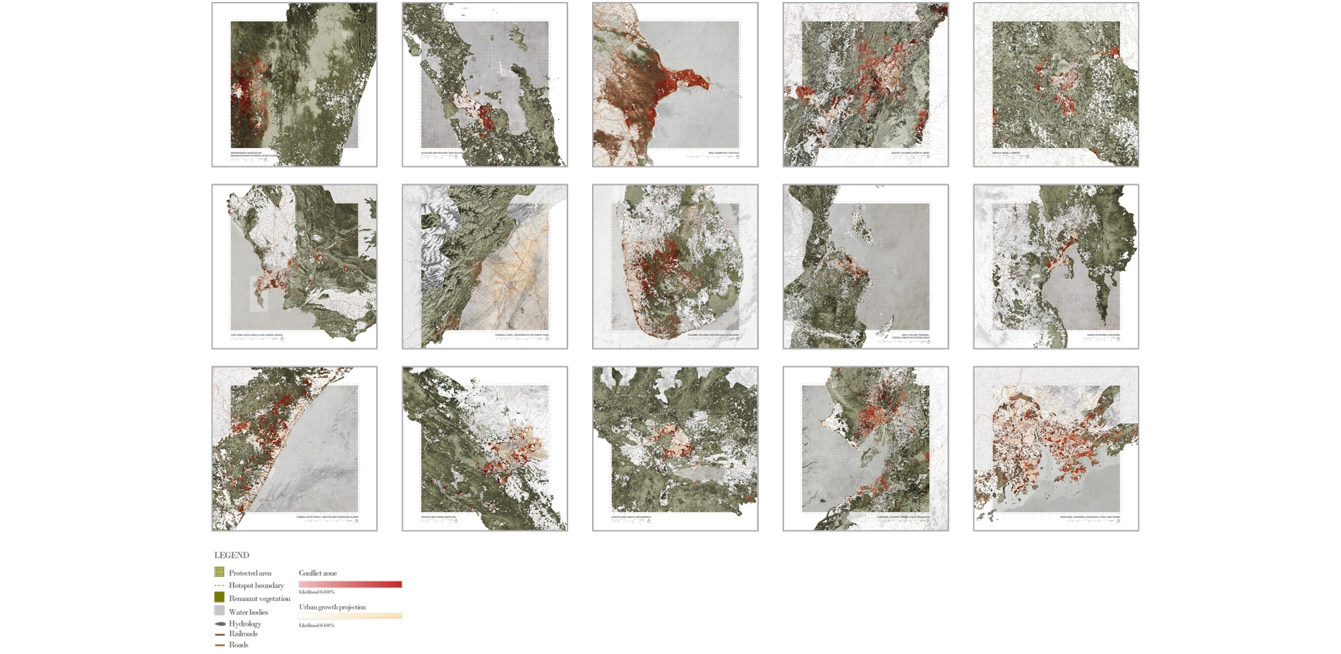 Through its analysis of both large-scale land-use and peri-urban growth that is in conflict with biodiversity, the Atlas serves as a geopolitical tool for planners and conservationists to focus and prioritize their efforts. Whilst this is valuable and important work in and of itself, the Atlas also prepares the ground for the involvement of landscape architecture in regions where the profession's skills are most needed.