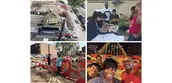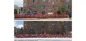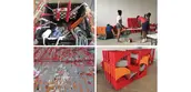 The fence was assembled, painted, and installed by the landscape architecture students with considerable contributions by a master carpenter and neighborhood youth. In the pop-up fabrication and painting workshop adjacent to the garden site, the landscape architecture students worked with Bronzeville youth to paint the carefully numbered pre-fabricated cutouts in red, orange and gray and assemble them into the two six-feet modules. After assembling all the modules, they were carried out to the site and installed on the pre-set 4x4 posts.