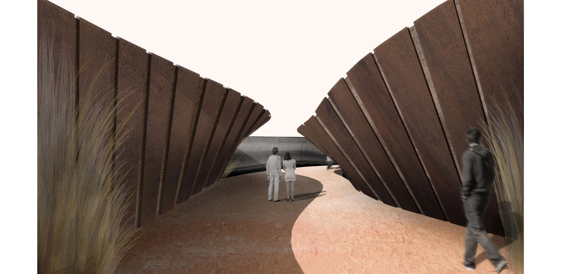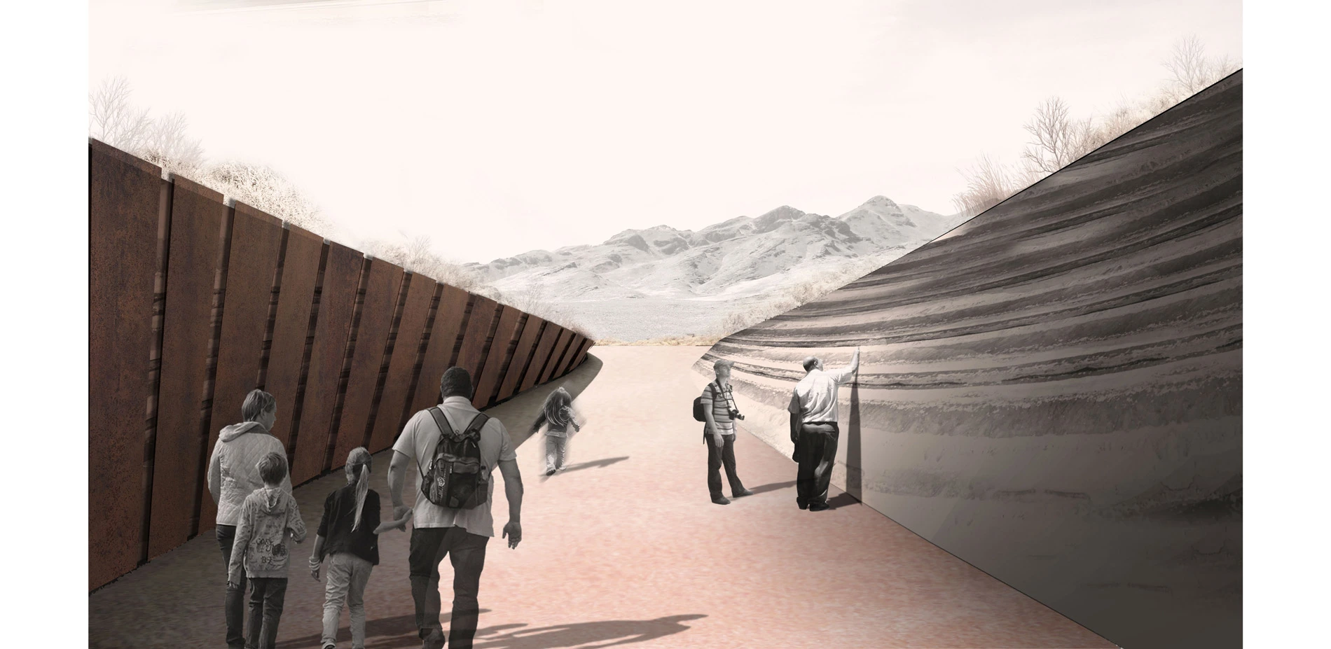 In the final stage, the visitor reemerges into the existing landscape, the walls widen and fold back into the landscape. The installation ends where it began though this time the visitor is facing the Paiute's "Stone Mother," the sacred rock sentinel watching over Pyramid Lake. Through this experience and design we hope to evoke a feeling of ecological justice for Pyramid Lake. To uncover the truth of Lake Winemucca and acknowledge the relationship this truth has had to the tribe and those that reap the benefits from this water diversion. Through this design we directly challenge the dichotomy between non-native and native relationships and aim to foster a new relationship for the Paiute and their sacred Pyramid Lake.