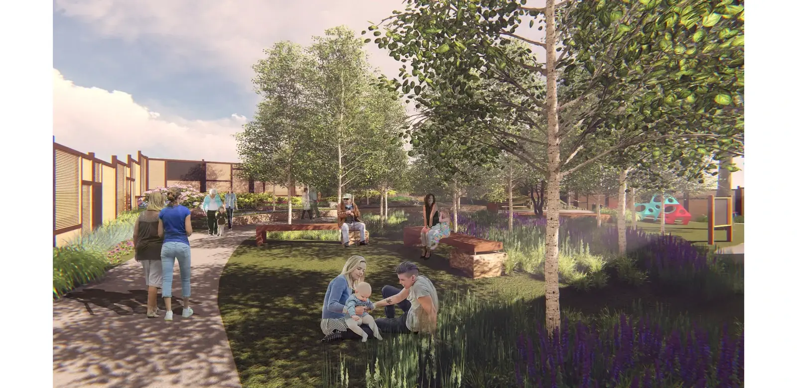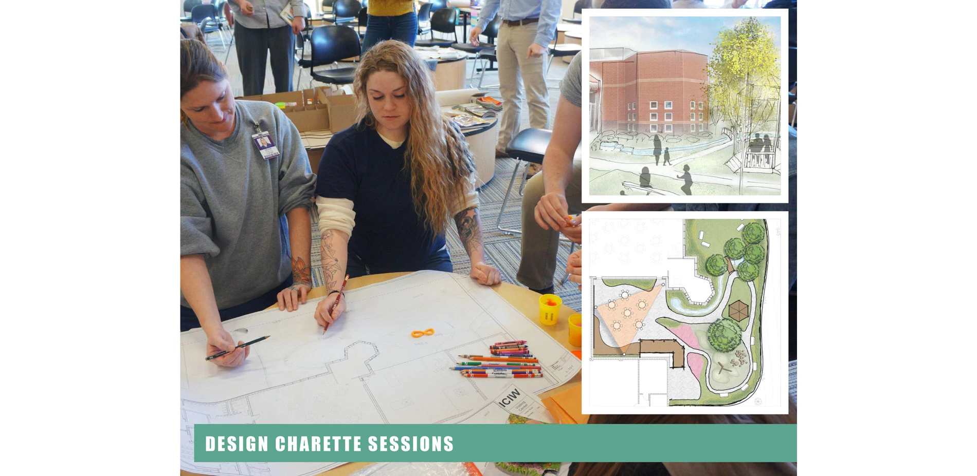The Iowa Correctional Institution for Women (ICIW) in Mitchellville partnered with students in our University's College of Design to design and build a space for incarcerated mothers to connect with their children. The design was created through a participatory process with incarcerated mothers and their children. We worked closely with prison administration to mitigate safety and security concerns. The resulting garden, grounded in therapeutic and biophilic design principles, provides interactive play, a walking and tricycle path, colorful plantings, and a conversation grove.