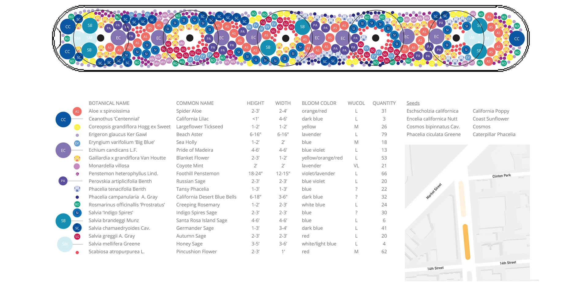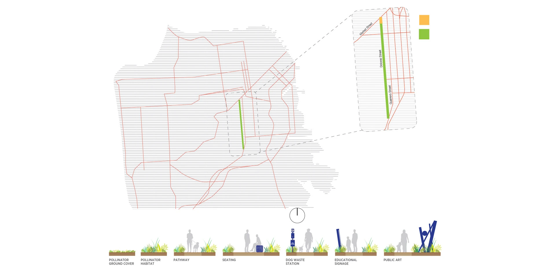 Expansion of urban areas has diminished critical habitats resulting in severely limited pockets of resiliency for a collection of diverse and important wildlife that would like to share our cities. The Dolores Street Pollinator Boulevard is prominent, public, and proudly committed to ecological principles, weaving together the needs of the human and pollinator communities alike.