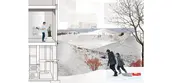 The proposal envisions the [RESERVE] as private housing co-located with public works, public recreation, and infrastructure within a single site and strategy. This proposal considers the aggregation of this multi-use landscape as a source of individual enjoyment that has a greater intelligence. The dynamic presence of snow shifts the binary between private residential space and public commons.