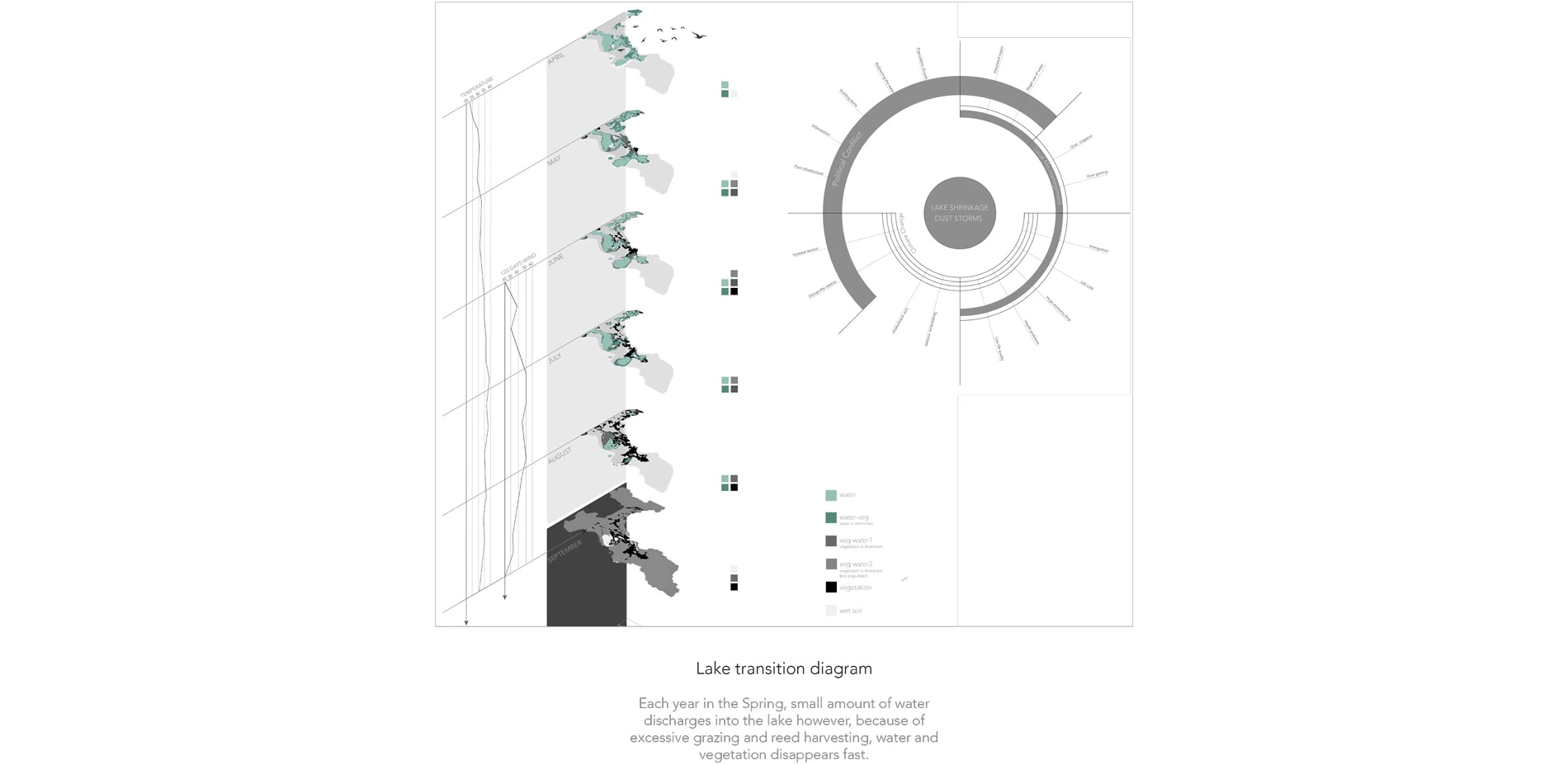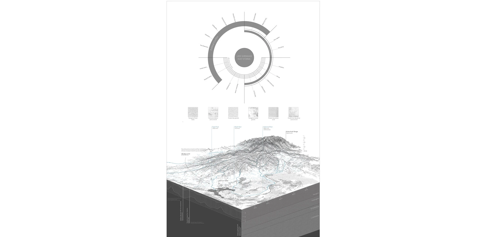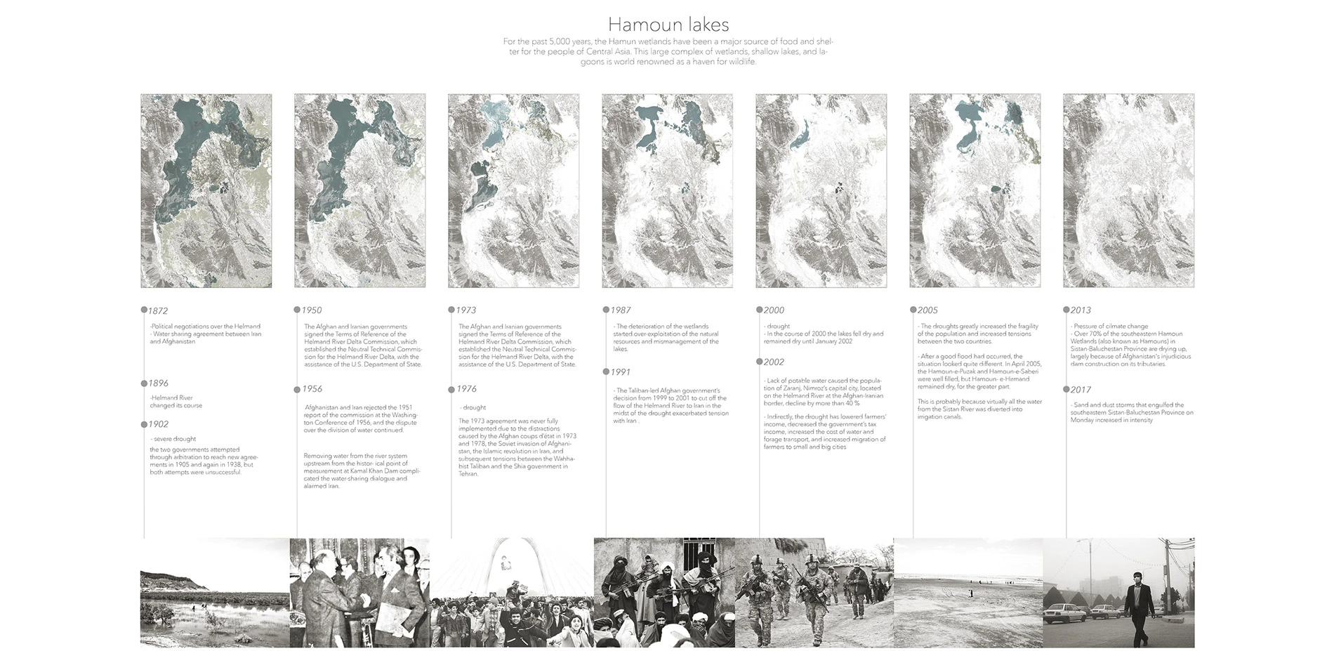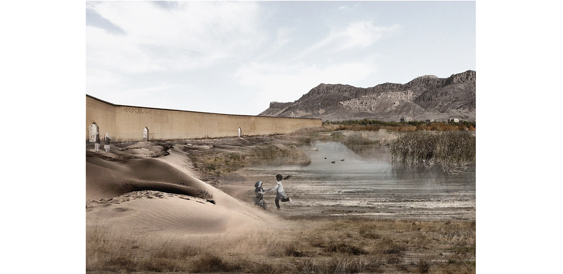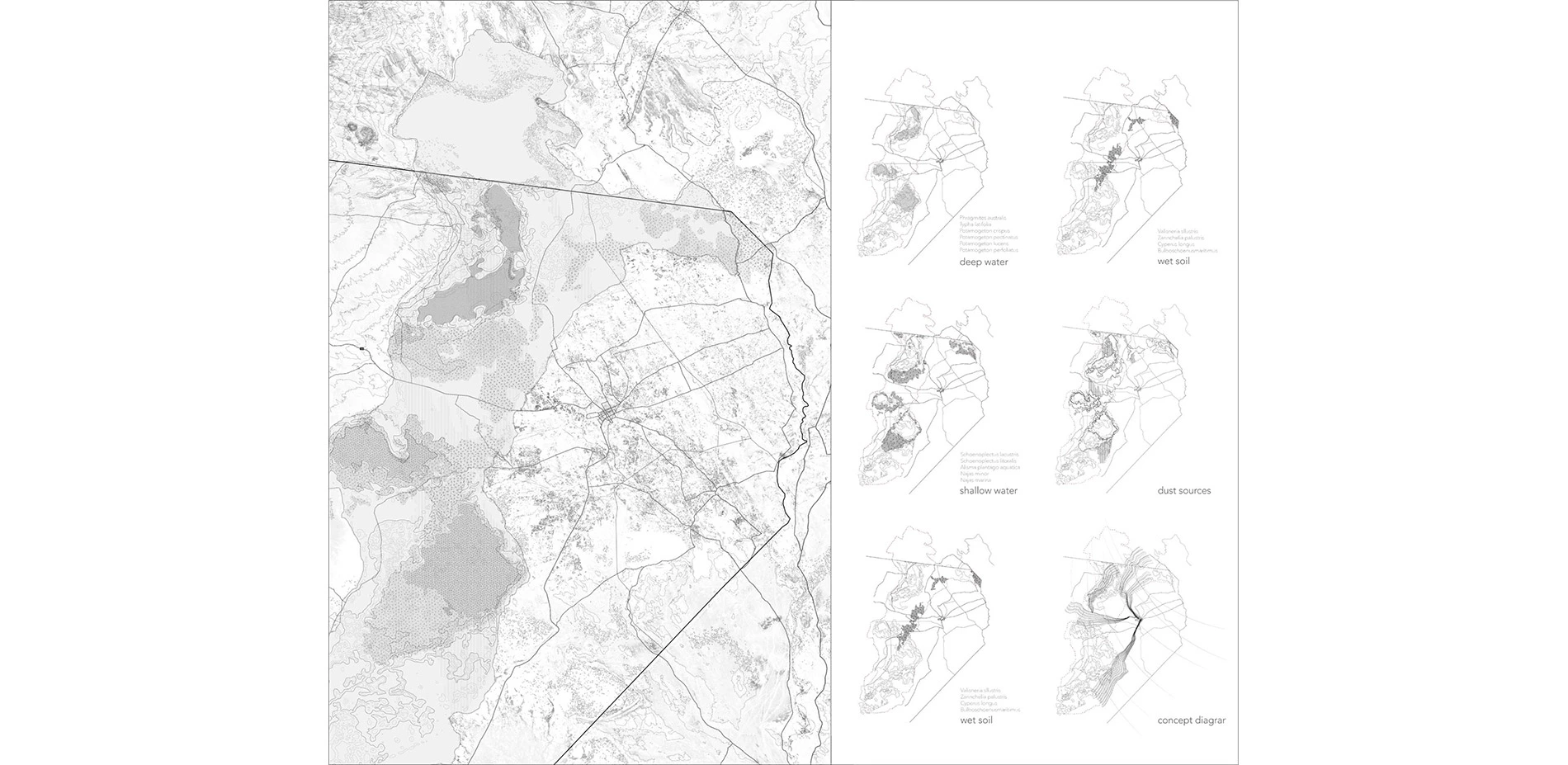 The strategy contends with the issue by addressing dust at its source. Hamoun lake. Working with environmental forces such as wind patterns and wetland systems the strategy harnesses the sites existing potential.