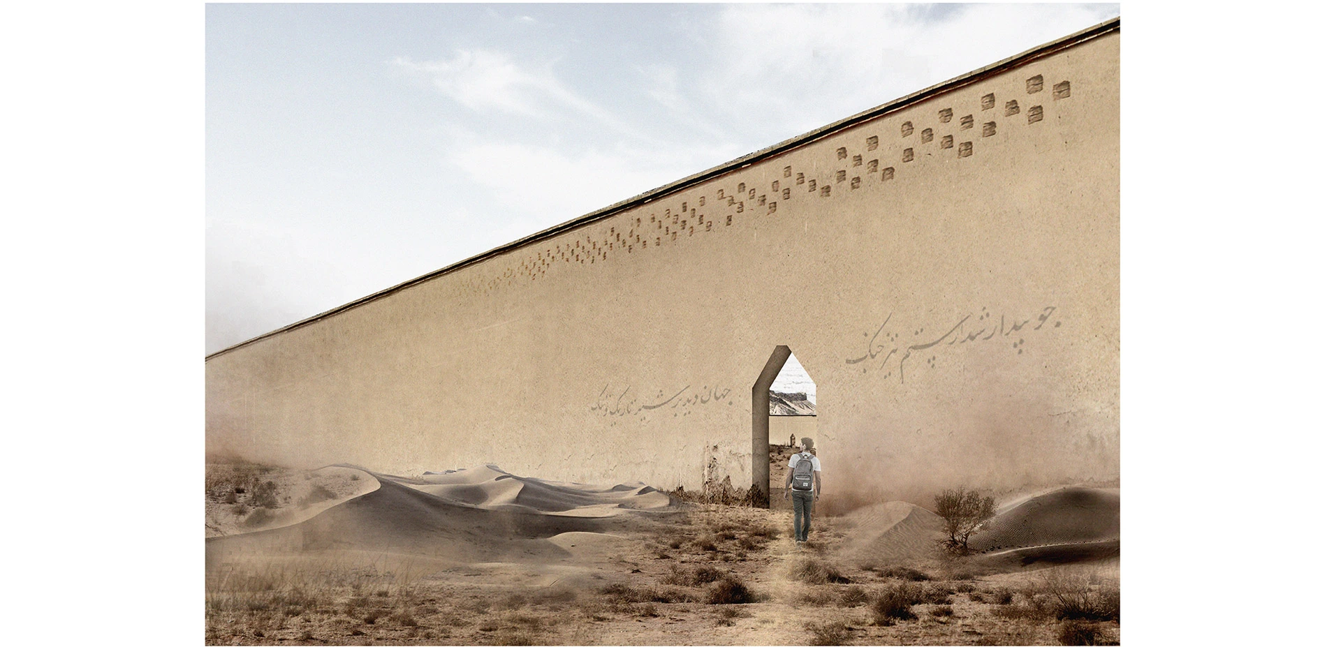 Moving through this series of 7 walls reflects and evokes the emotions and thoughts that allude to the story of rustam which is deeply embedded in the culture of this region. The walls have cuts and gates that frame views to this mountain guide and direct people to a spectacular view of the landscape beyond.