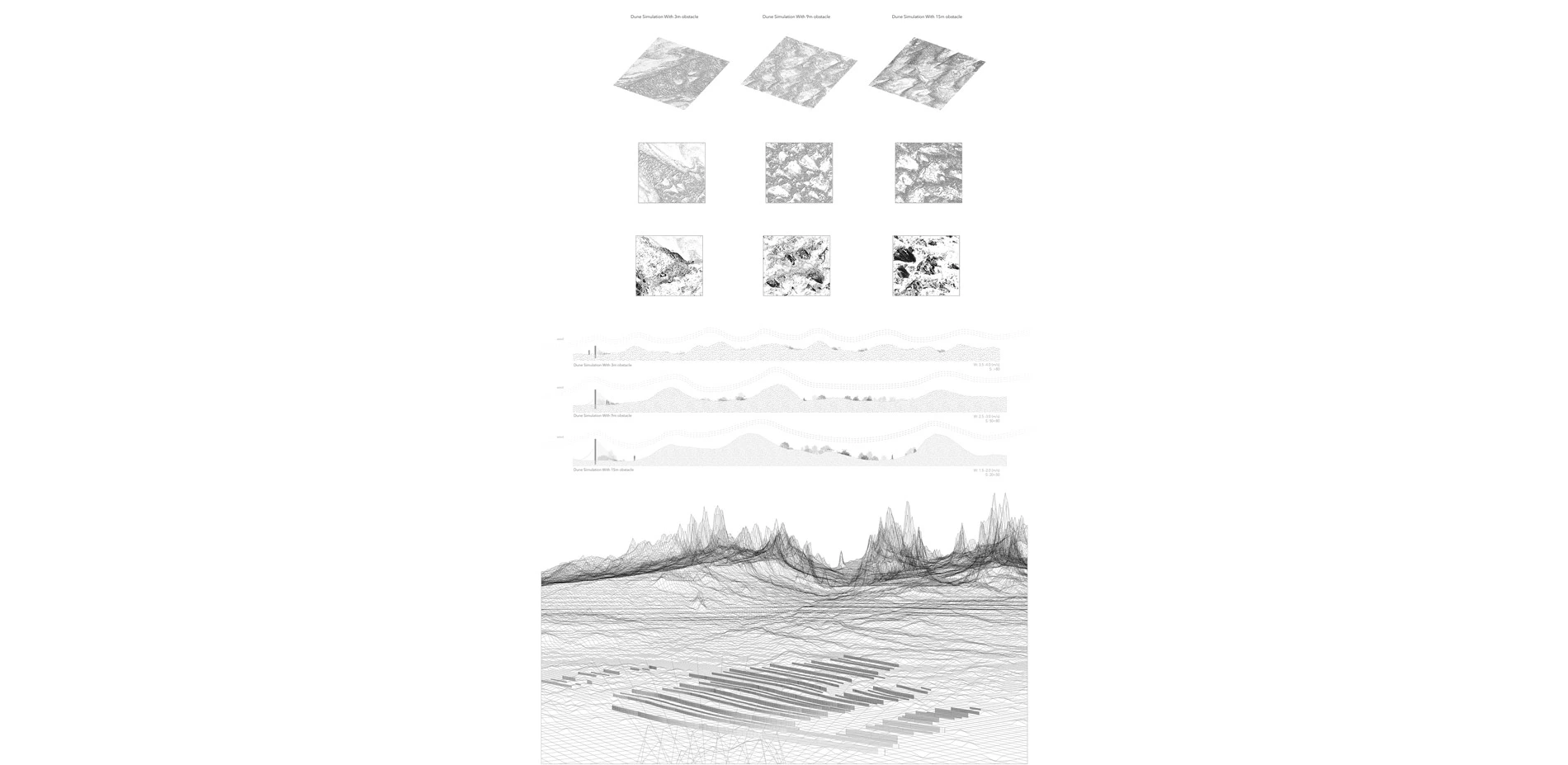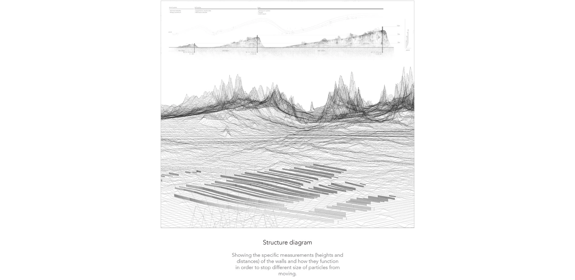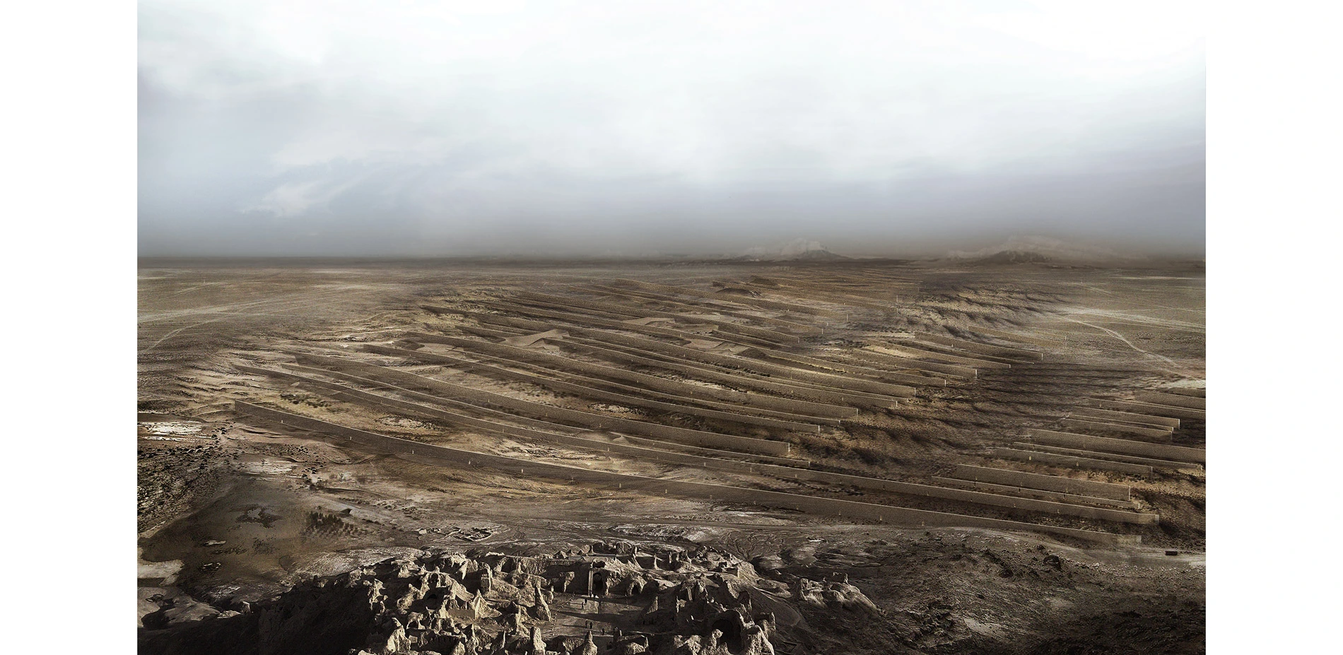For the places that are still dry and generate dust storms, Based on the physics of dust storms, dust particle and wind velocity and with the objective of ecological improvement as part of a functional landscape, my project proposes a physical dust-mitigation armature in the landscape.