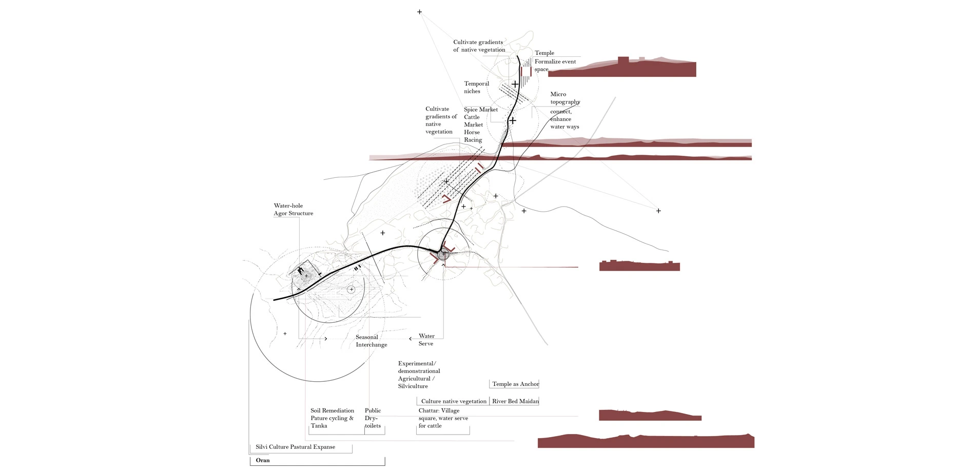 Through the transect, from the back of the village, through Tilwara, through Luni, to the temple on the other side, there were certain scopes of other programmatic interventions along with the Oran.