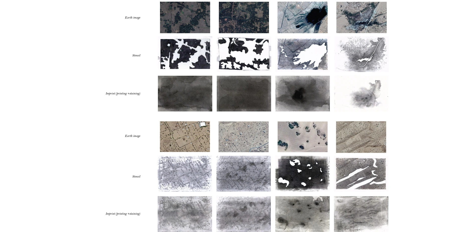 The primary exercise of the studio was to counter the tradition reading of Rajasthan, with a "slowness and distancing of the analog" with imprints and montages. Much of this imprint, however, lies behind the scene. In this case the imprints were the practices of staining. Staining as a lens of re-enacting embodiment of wetness in the landscape.