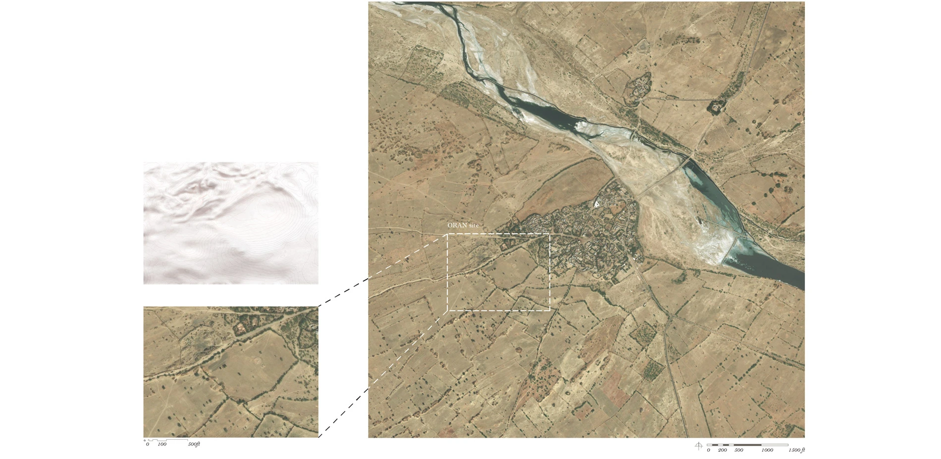 These ecologies demand the cultivation of an eye that looks beyond the scene, the imprint to engage, and an itinerary that intersects with the practices of people. The project tried to address these issues by analyzing traditional Orans and looking at potential site for new Oran.