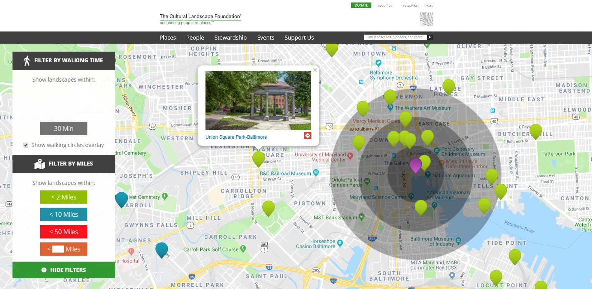 An outgrowth of The Cultural Landscape Foundation's What's Out There database, the What's Out There Cultural Landscapes Guides artfully present the landscape legacy of five of the nation's great East Coast cities. Produced in partnership with the National Park Service and offered free to the public, each online guide includes essays on scores of sites and their designers, comprising a visually engaging and constantly expanding digital inventory of landscapes searchable by type (e.g. Neighborhood Park), style (e.g., Modernist), theme (e.g., Urban Renewal), and designation (e.g., National Historic Landmark). Meant to broaden the traditional audience for landscape architecture, the guides allow the sites to be grouped and understood through new interpretive lenses, highlighting their connections to larger cultural and historical themes. The guides are also seamlessly linked to myriad related content on TCLF's website and are integrated with GPS-enabled, interactive maps, making them especially useful to digital-native users and encouraging exploration of the urban environment on foot.